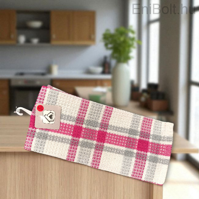 Kezdőlap » Otthon » Konyhai eszközök, kiegészítők » Eszközök » Konyharuha fehér szürke fukszia kockás 60x40 cm