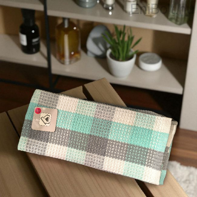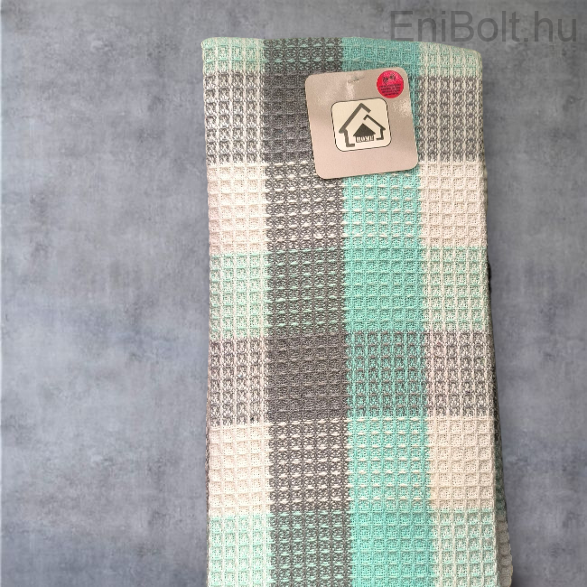 Praktikus és tartós konyharuha, klasszikus kockás mintával fehér, szürke, sötétkék és zöld színekben. Ideális választás a mindennapi konyhai munkához, poharak és edények szárításához.