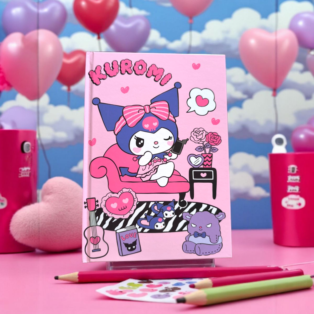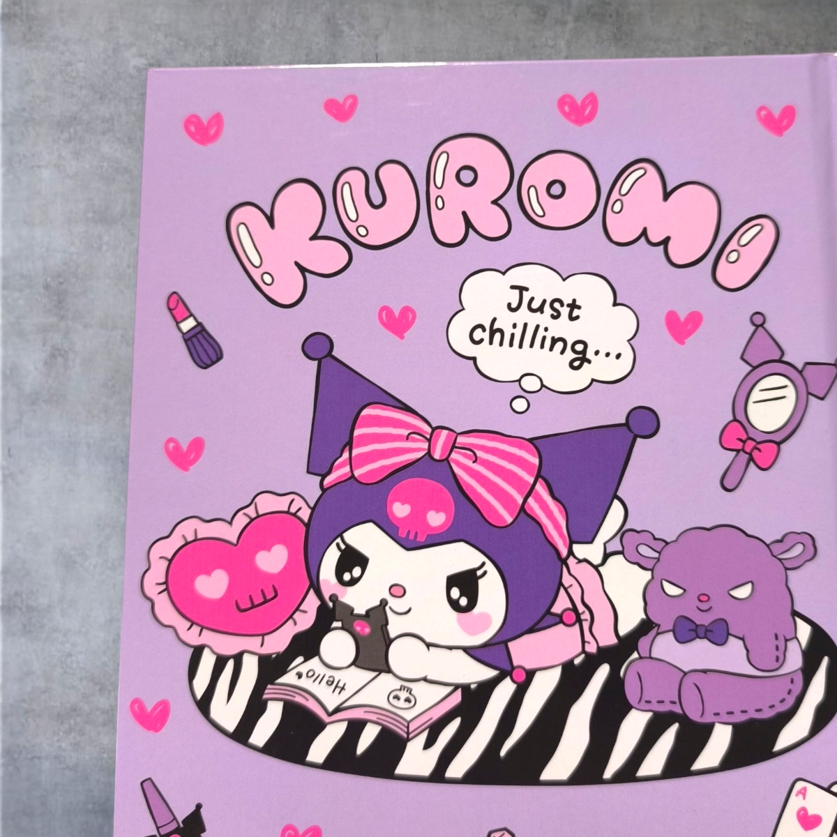 Stílusos és praktikus Kuromi jegyzetfüzet, amely ideális választás jegyzetek, rajzok vagy iskolai feladatok vezetéséhez. A rózsaszín-lila borítón a népszerű Kuromi karakter látható, így a füzet nemcsak hasznos, hanem trendi kiegészítő is.