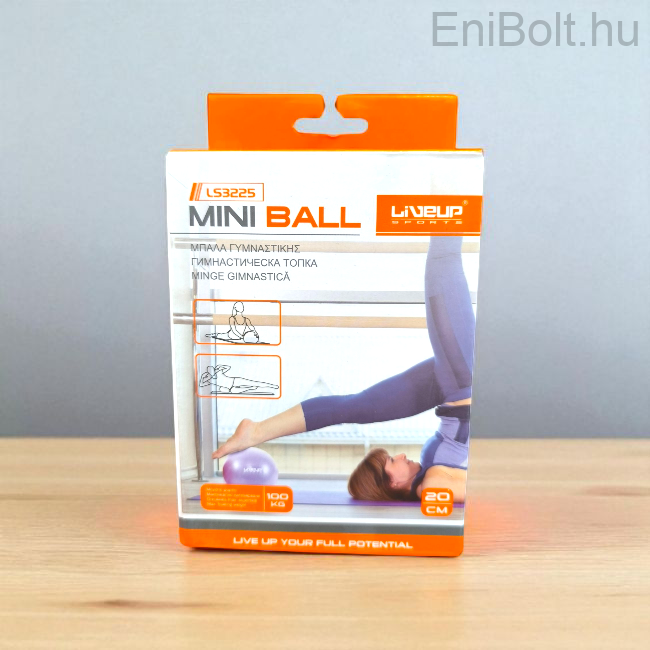 A LiveUp mini gimnasztikai labda kiváló választás pilateshez, jógához, rehabilitációhoz és otthoni tornagyakorlatokhoz. A 20 cm átmérőjű labda ideális hasizom-, gerinc- és egyensúlyfejlesztő edzésekhez. Kompakt mérete miatt könnyen tárolható, és kényelmesen felfújható. Lila színben, maximum 100 kg terhelhetőséggel.