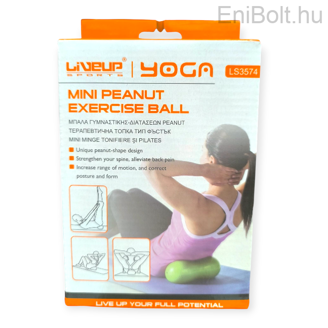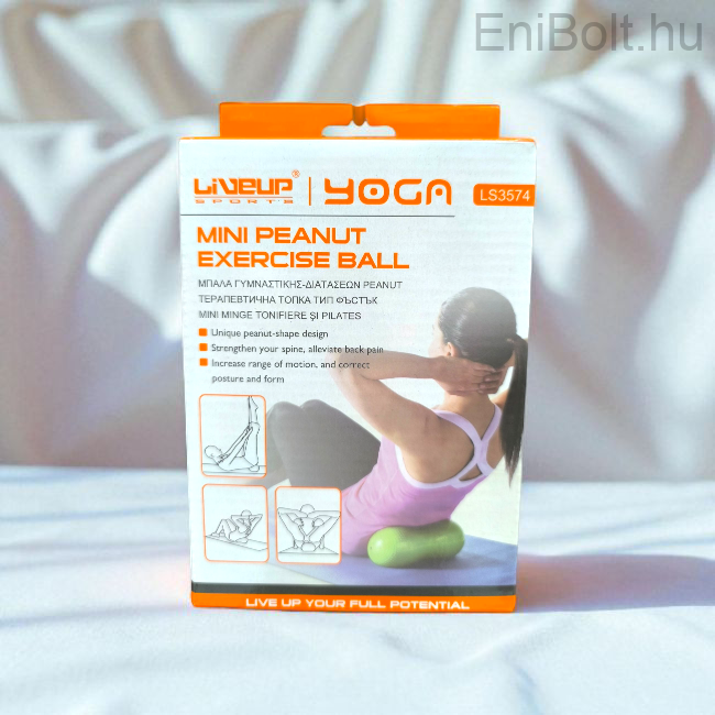 Ez a 12×28 cm-es mogyoró alakú gimnasztikai labda a LiveUp márkától kifejezetten a gerinc és a törzsizmok erősítésére készült. Segít enyhíteni a hátfájást, javítani a testtartást és növeli a mozgástartományt.
