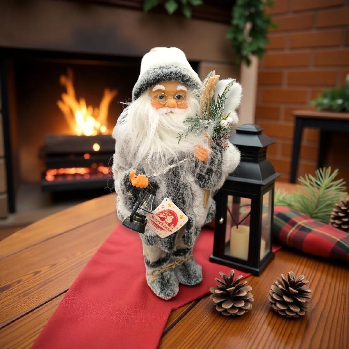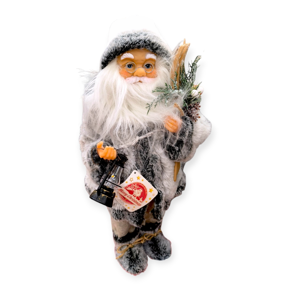 Kezdőlap » Karácsonyi dekorációk » Mikulás figurák » Mikulás dekoratív figura szürke ruhában, síléccel és lámpással 45 cm