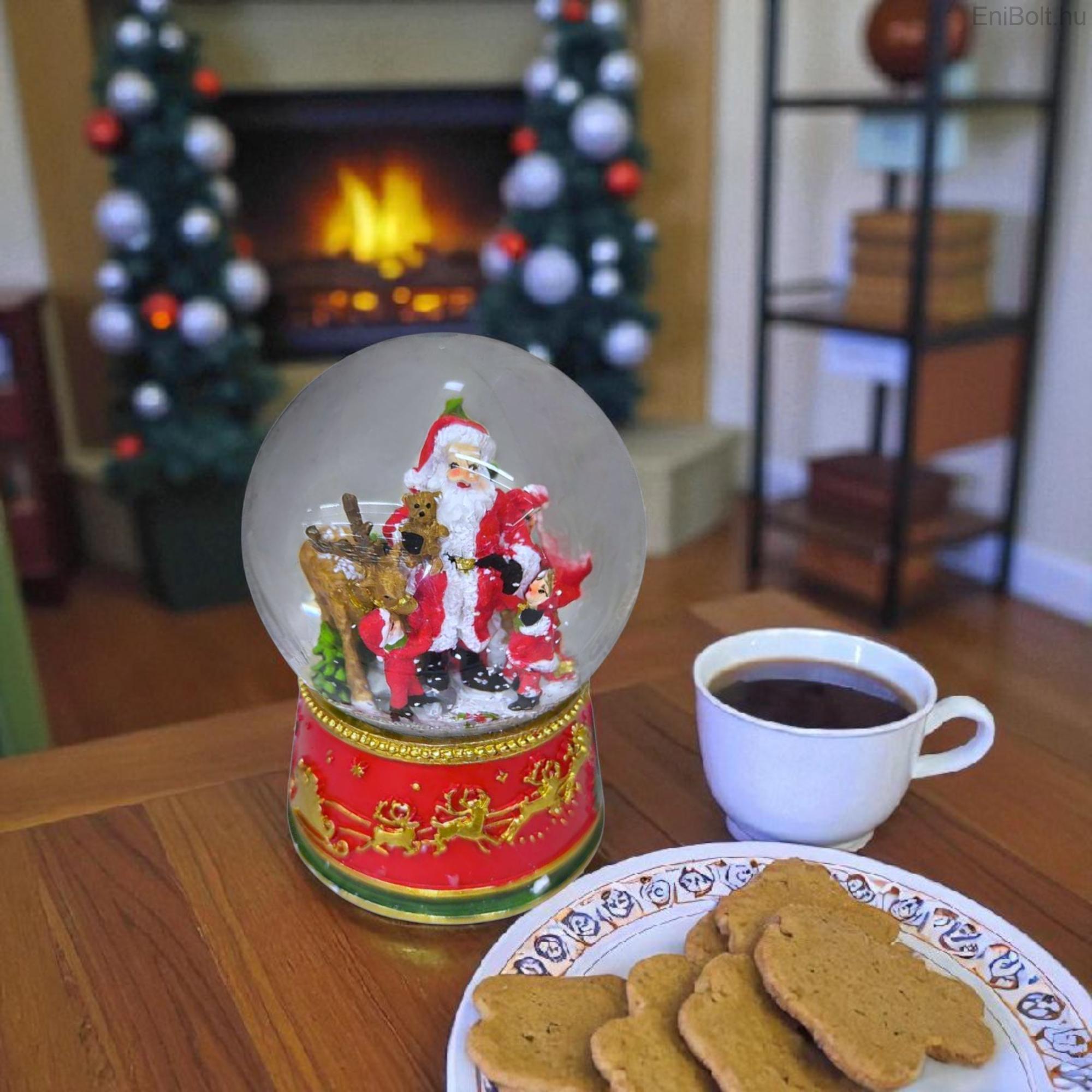 Hangolódj az ünnepekre ezzel a varázslatos zenélő hógömbbel, amelyben a Mikulás és szarvasa jelenik meg piros alapon. A finom részletek és a lágy dallam igazi karácsonyi hangulatot teremtenek. Tökéletes dekoráció vagy ajándék az ünnepi szezonra.