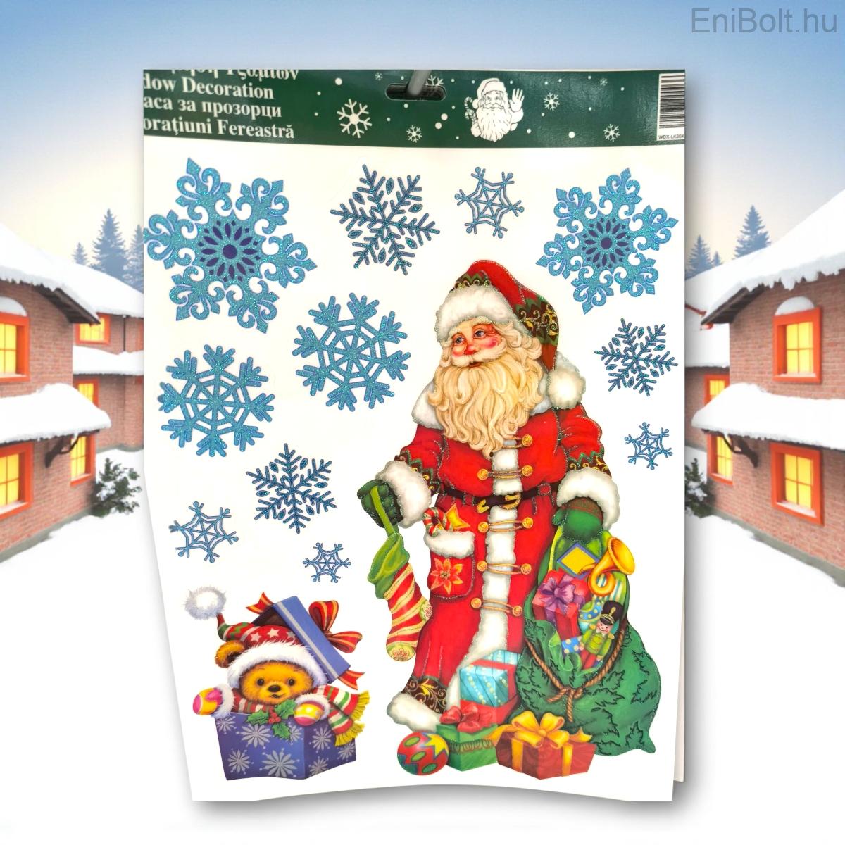Kezdőlap » Karácsonyi dekorációk » Karácsonyi matricák » Mikulásos karácsonyi ablakmatrica csillámos pelyhekkel 30x42cm