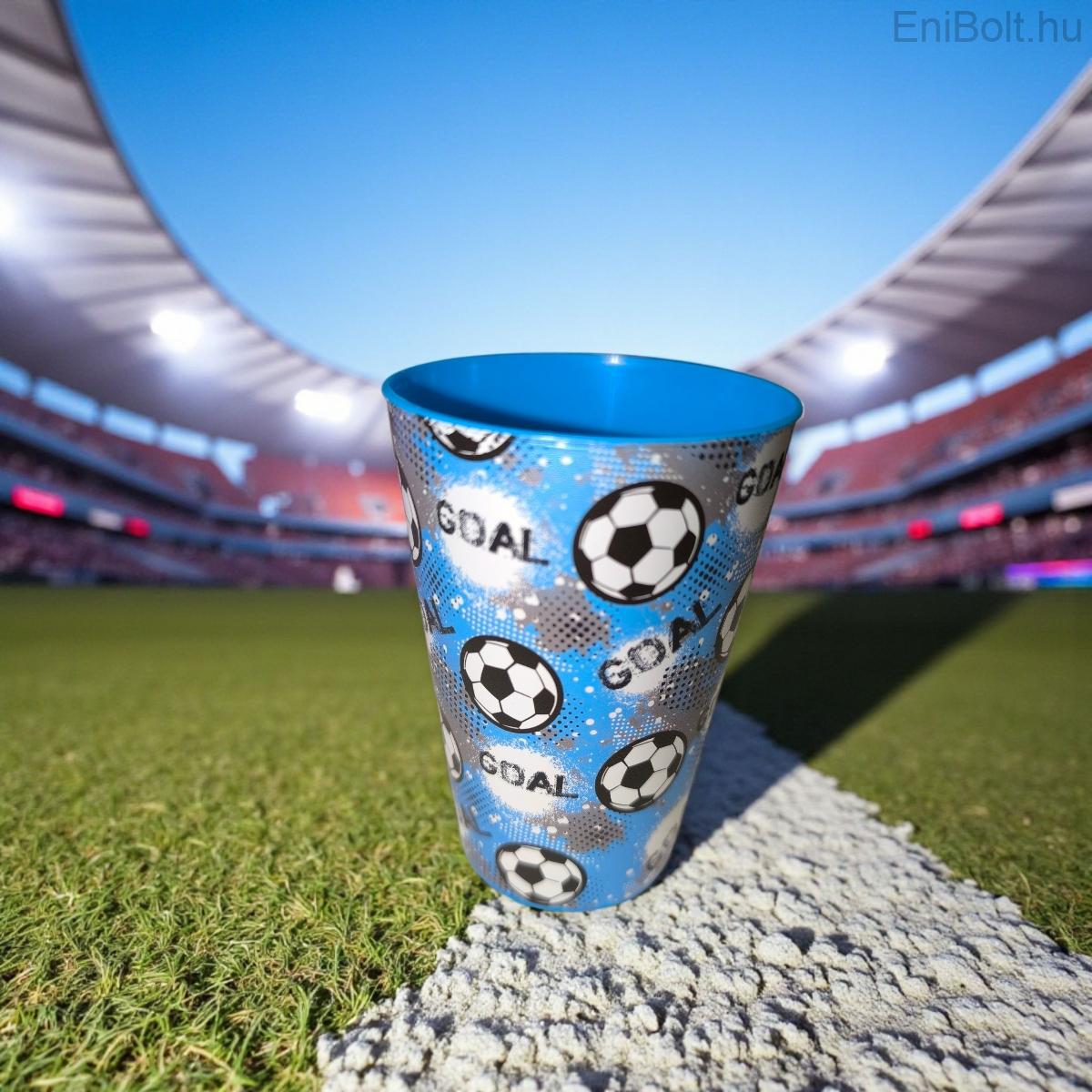 Kék műanyag pohár focis mintával, kifejezetten fiúknak. A poháron focilabda dizájn és „GOAL” felirat látható, így tökéletes választás minden kis focirajongó számára. Könnyű, tartós anyagból készült, így ideális otthoni, óvodai vagy iskolai használatra is. Ergonomikus kialakításának köszönhetően a gyerekek könnyen kézben tarthatják, miközben biztonságosan használhatják.