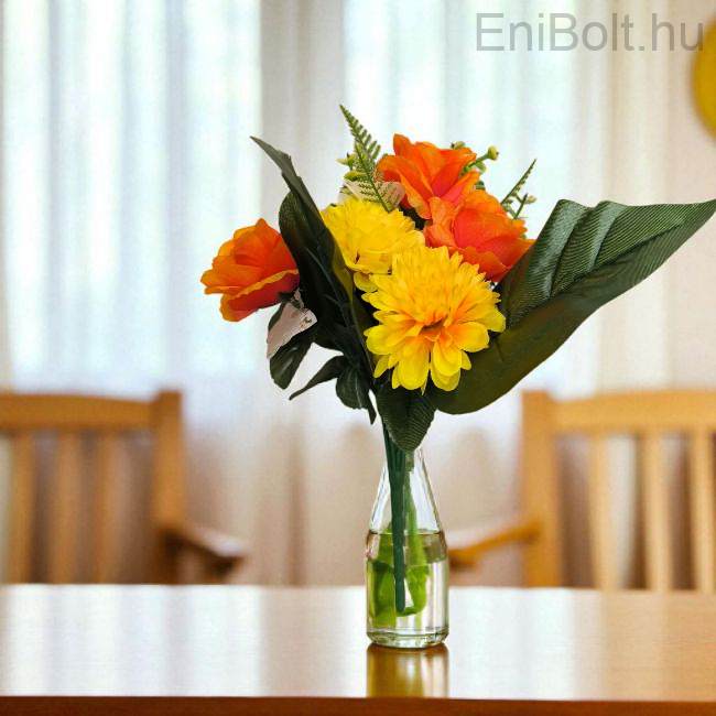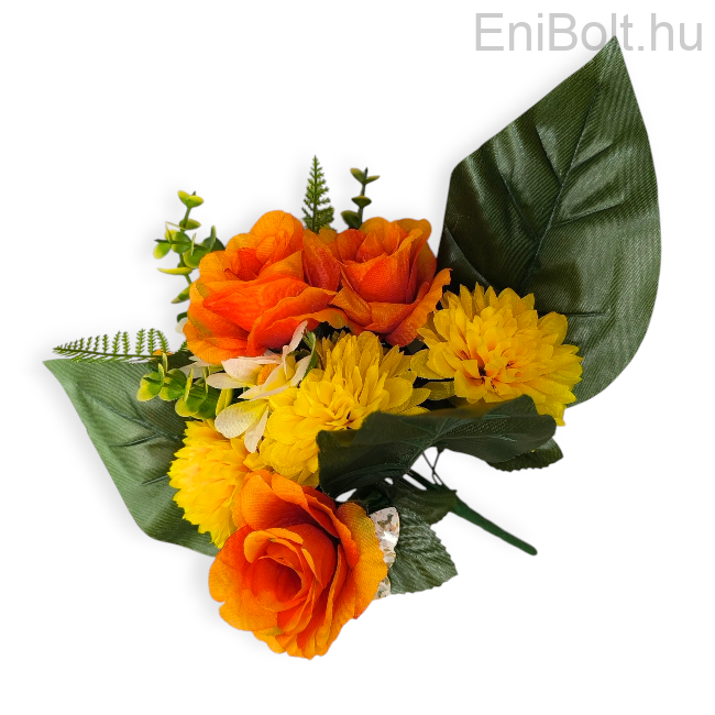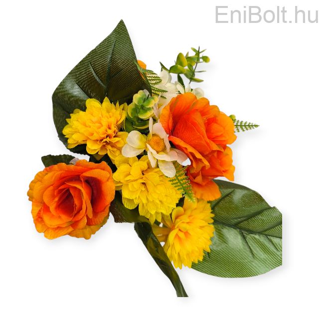 Kezdőlap » Otthon » Művirágok » Művirágcsokor sárga százszorszéppel és narancssárga rózsával – 35 cm