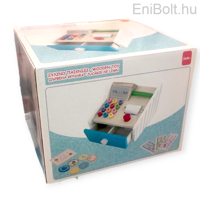 Szórakoztató és oktató jellegű pénztárgép játék, amely segíti a gyermekeket a vásárlás és pénzkezelés alapjainak elsajátításában. A pénztárgép színes gombokkal, papírtekerccsel, játékkártyával, bankjegyekkel és érmékkel van felszerelve (nem euró). A manuálisan nyitható fiók élethűbbé teszi a játékélményt. Tökéletes szerepjátékhoz, fejleszti a számolási készséget, a logikát és a társas készségeket.