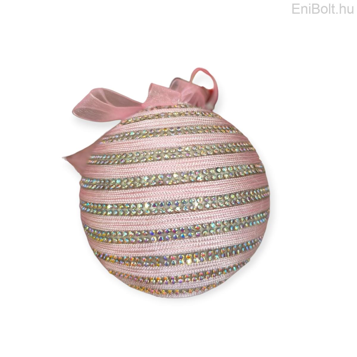 Kezdőlap » Karácsonyi dekorációk » Karácsonyfa gömbök » Rózsaszín és pasztell » Pasztell rózsaszín karácsonyfadísz csipkével és strasszokkal 9cm