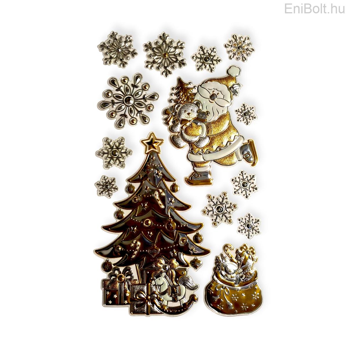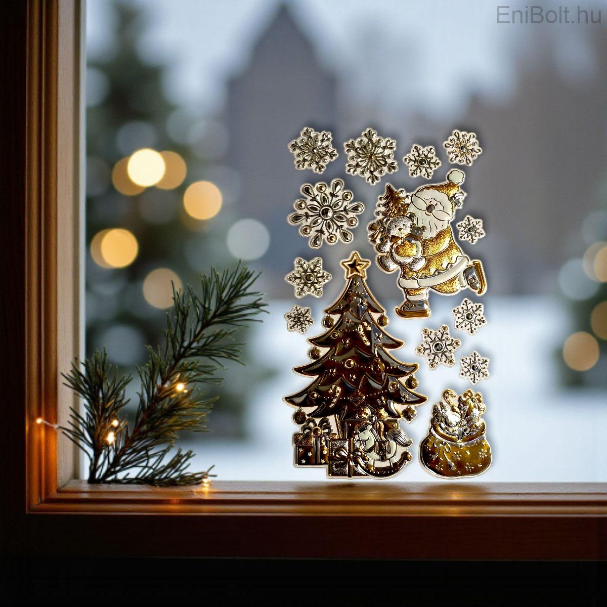 Kezdőlap » Karácsonyi dekorációk » Karácsonyi matricák » Pezsgő-bézs karácsonyi ablakmatrica – Mikulás, karácsonyfa és ajándékok 24×41 cm