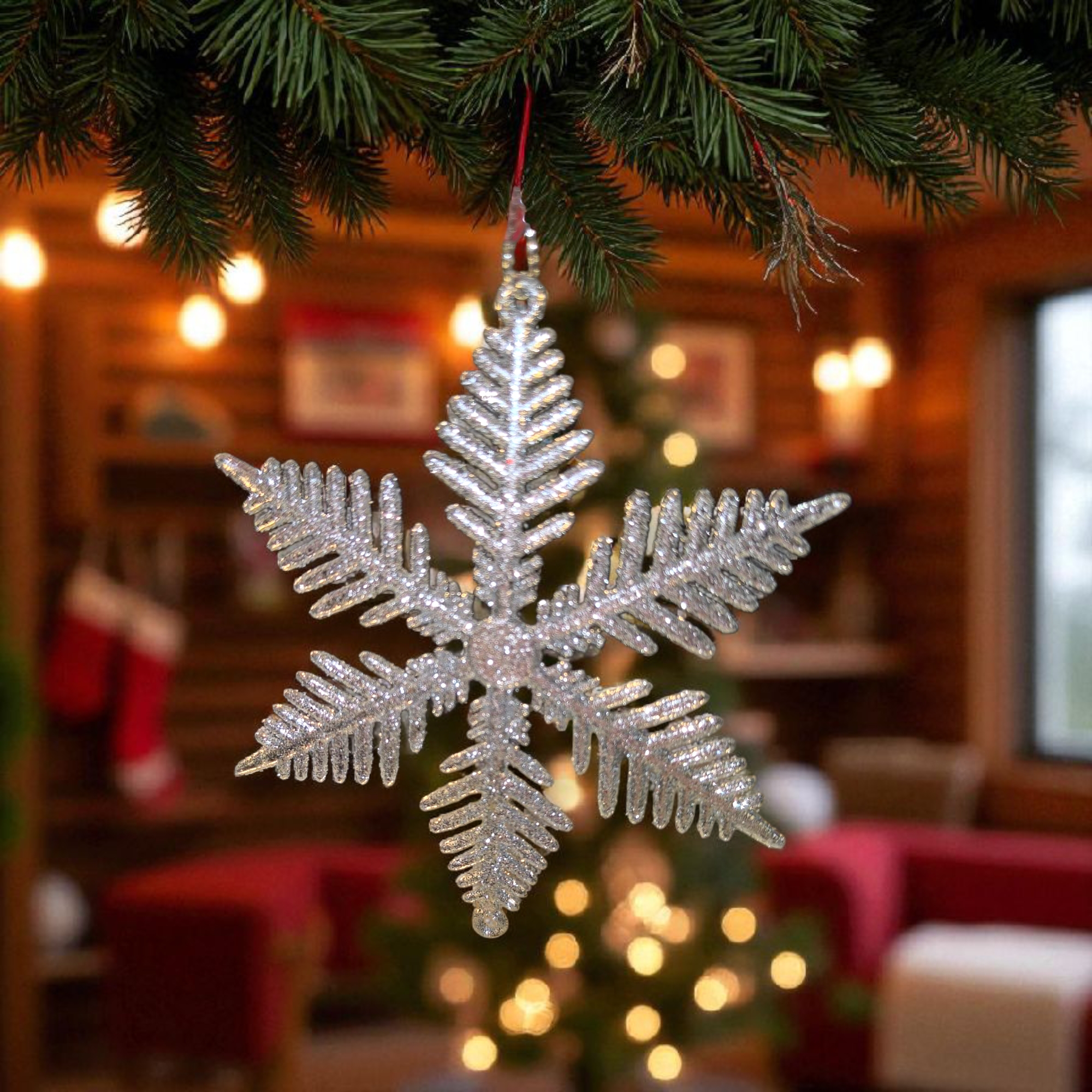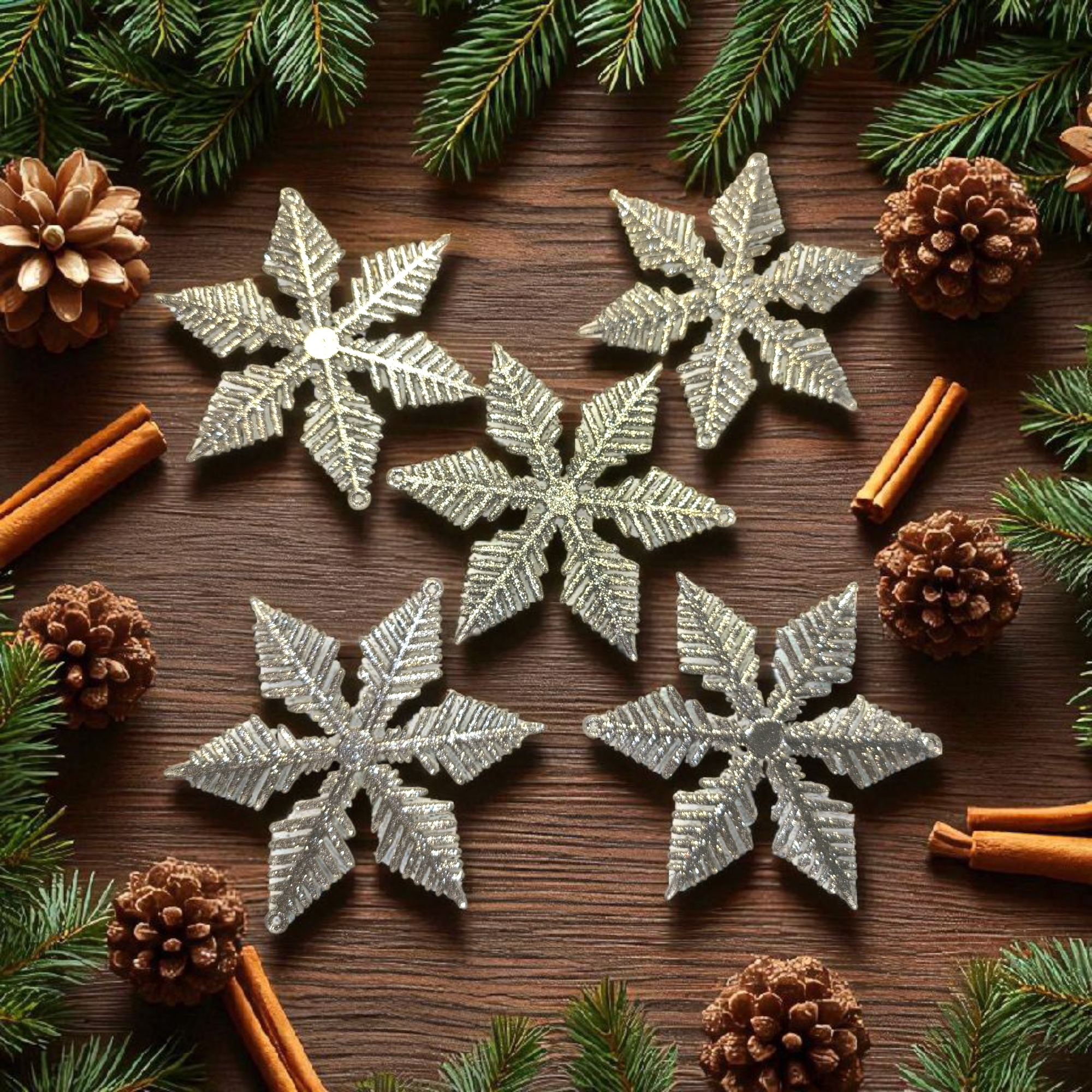 Kezdőlap » Karácsonyi dekorációk » Karácsonyfa gömbök » Pezsgő díszek » Pezsgő hópihe karácsonyfa dísz készlet 5 db-os 8 cm