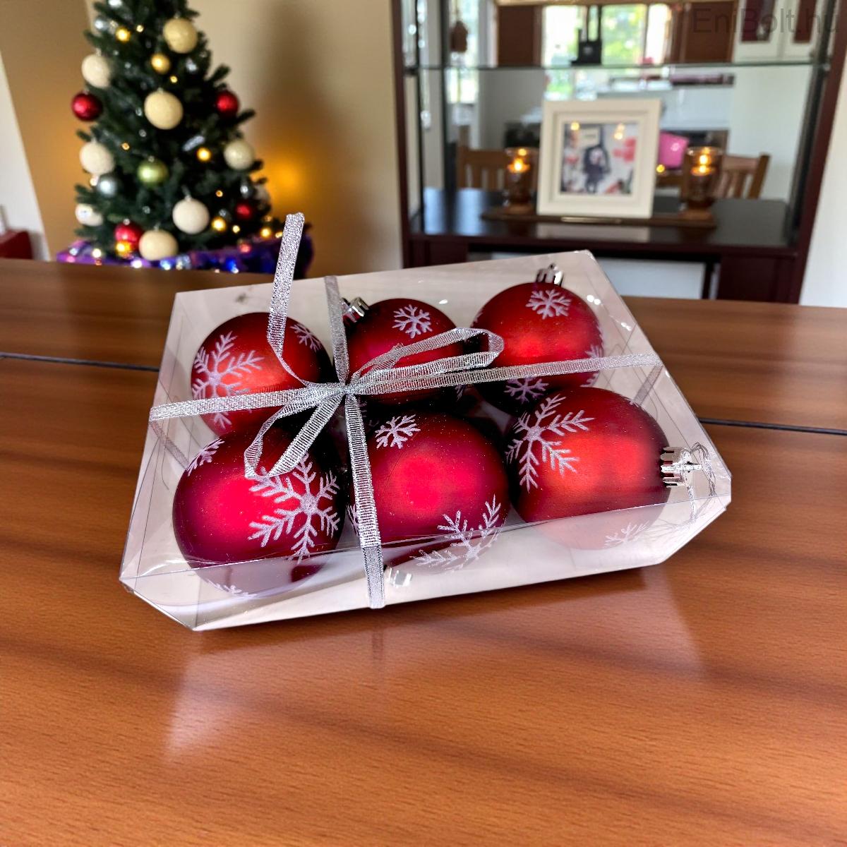 Kezdőlap » Karácsonyi dekorációk » Karácsonyfa gömbök » Piros díszek » Piros-arany pehely karácsonyi gömb szett Ø6cm – 6db