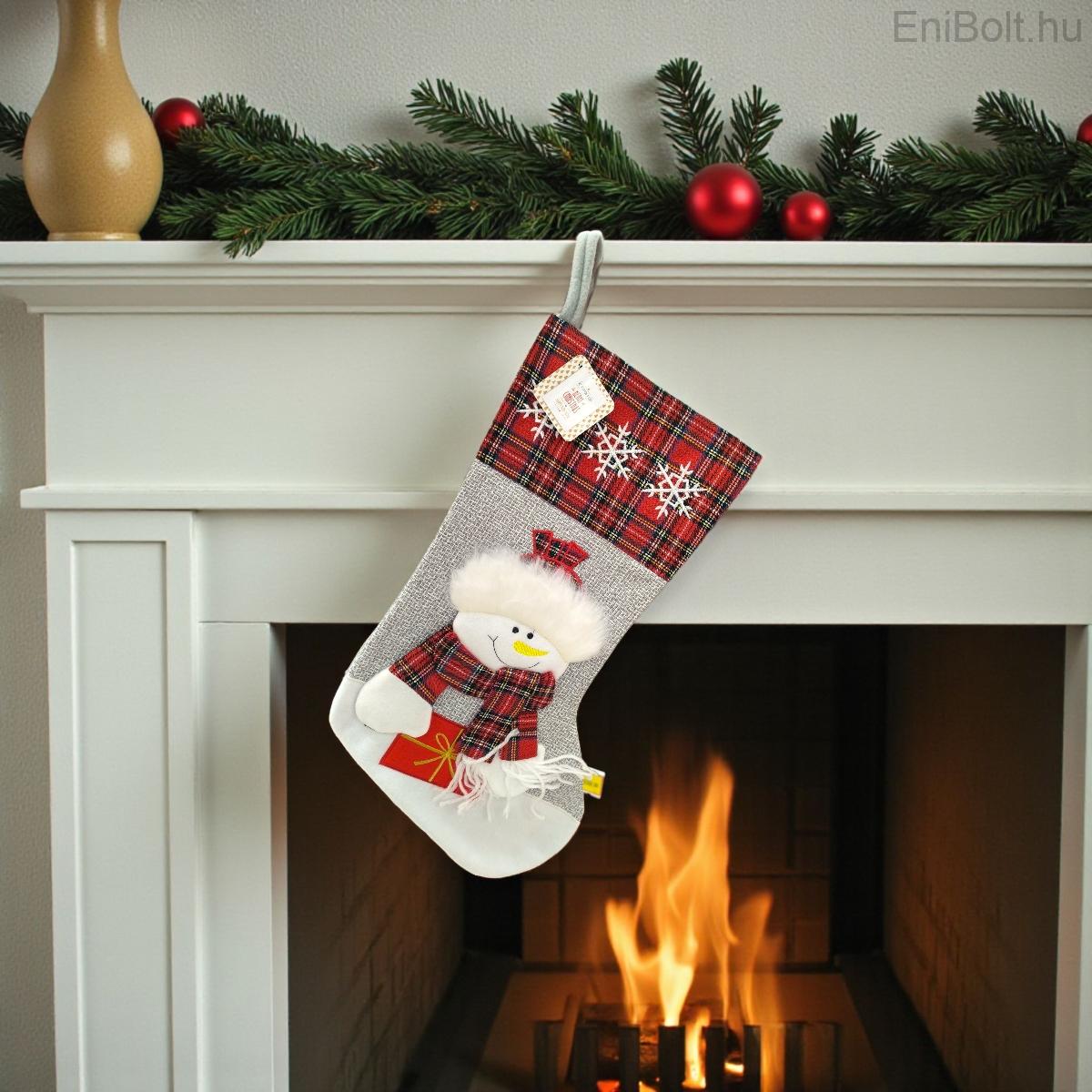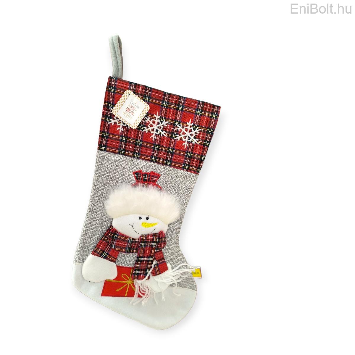 Kezdőlap » Karácsonyi dekorációk » Betlehemek, Mikulás csizmák » Piros-szürke 3D karácsonyi mikuláscsizma hóemberrel 45cm