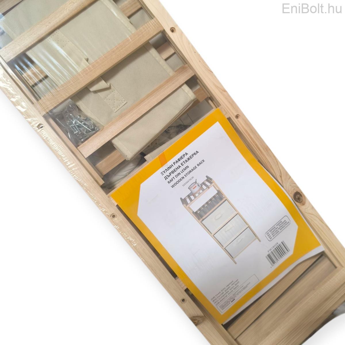 Polc fiókokkal fürdőszobába 5 szintes, fa váz 2 polc 3 textilfiók 32x26x76 cm