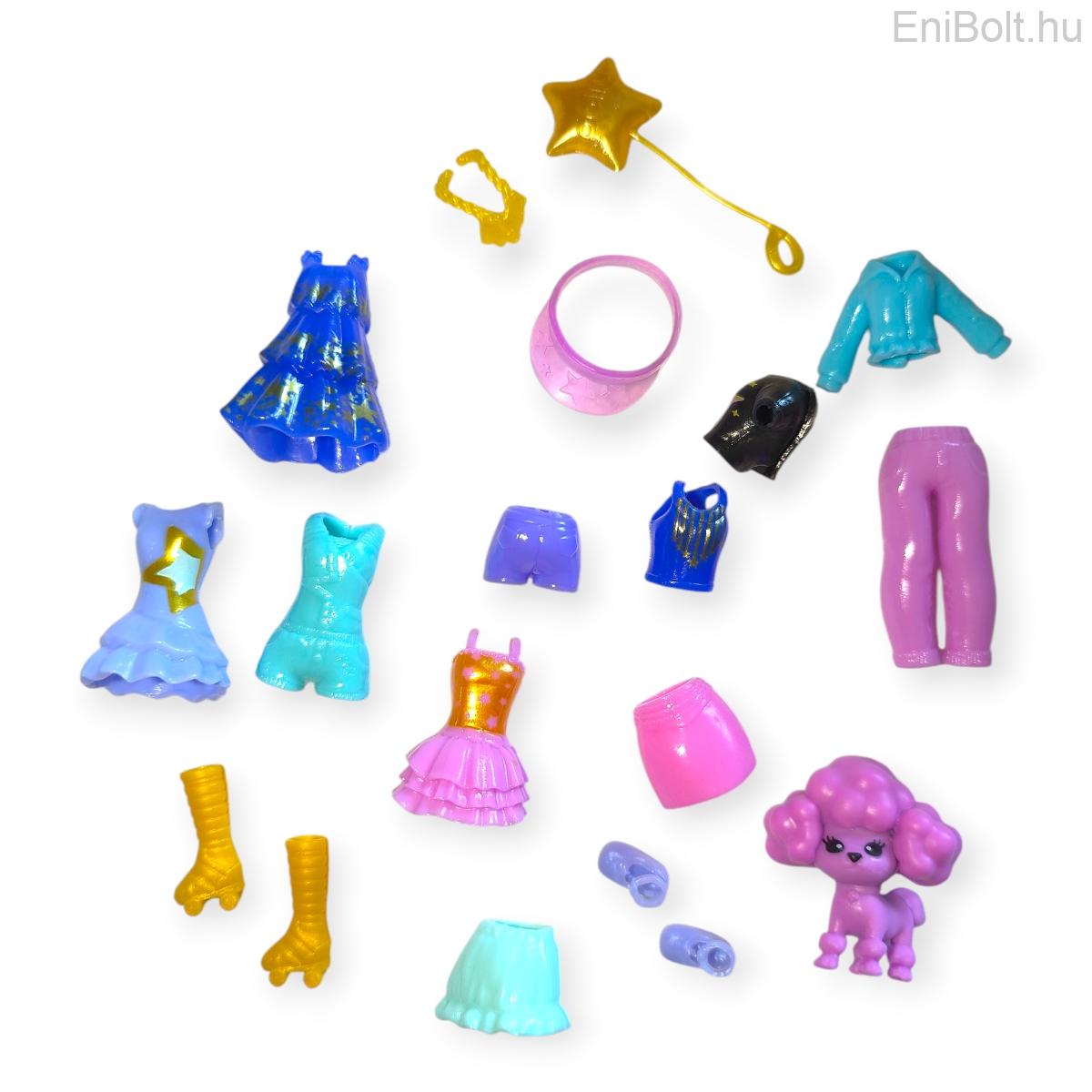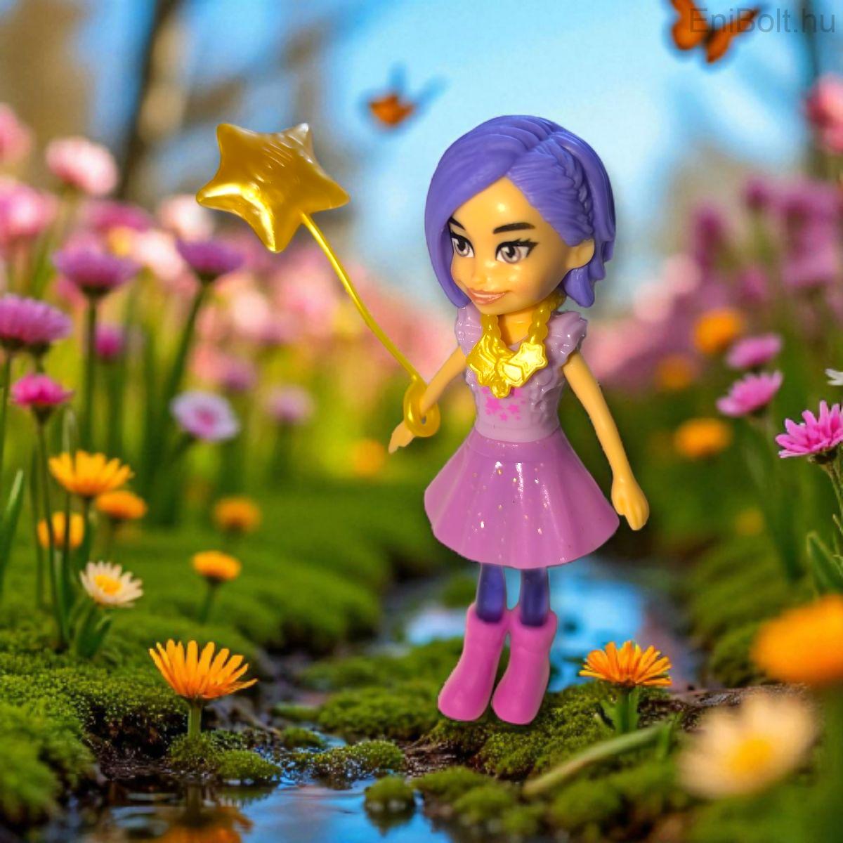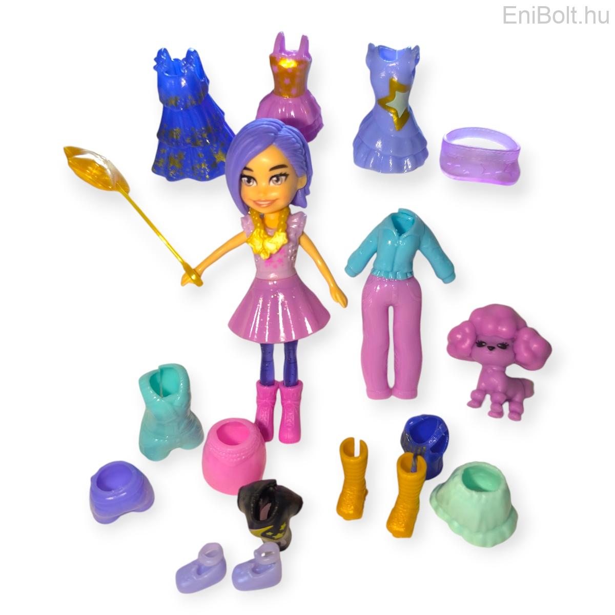 Fedezd fel a stílus és játék varázsát a Mattel Polly Pocket divatcsomaggal! Ez a szuper aranyos készlet egy 3 hüvelyk (kb. 7,6 cm) magas babát, egy uszkár kisállatot, valamint 17 divatos ruhát és kiegészítőt tartalmaz, melyeket a gyerekek könnyedén keverhetnek és párosíthatnak. A csillagos éjszaka témájú szettben fémes és csillogó díszítések, valamint egy csillag alakú lufi teszik különlegessé a játékot.