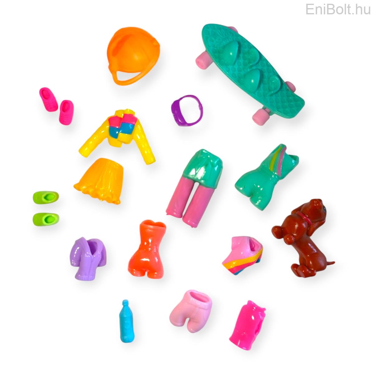 A gyermekek megmutathatják stílusukat a Polly Pocket™ divatcsomagokkal, amelyek tele vannak babaruhákkal és kiegészítőkkel! Minden tematikus készlet tartalmaz egy babát és 18 elemet, köztük egy kisállatot, valamint fémes és csillogó részletekkel díszített tárgyakat. A fiatal divatrajongók mindet összegyűjthetik, hogy útközben keverjék és párosítsák a ruhákat. A divatcsomagok külön vásárolhatók meg, a készletváltozás és a dekorációk eltérhetnek.