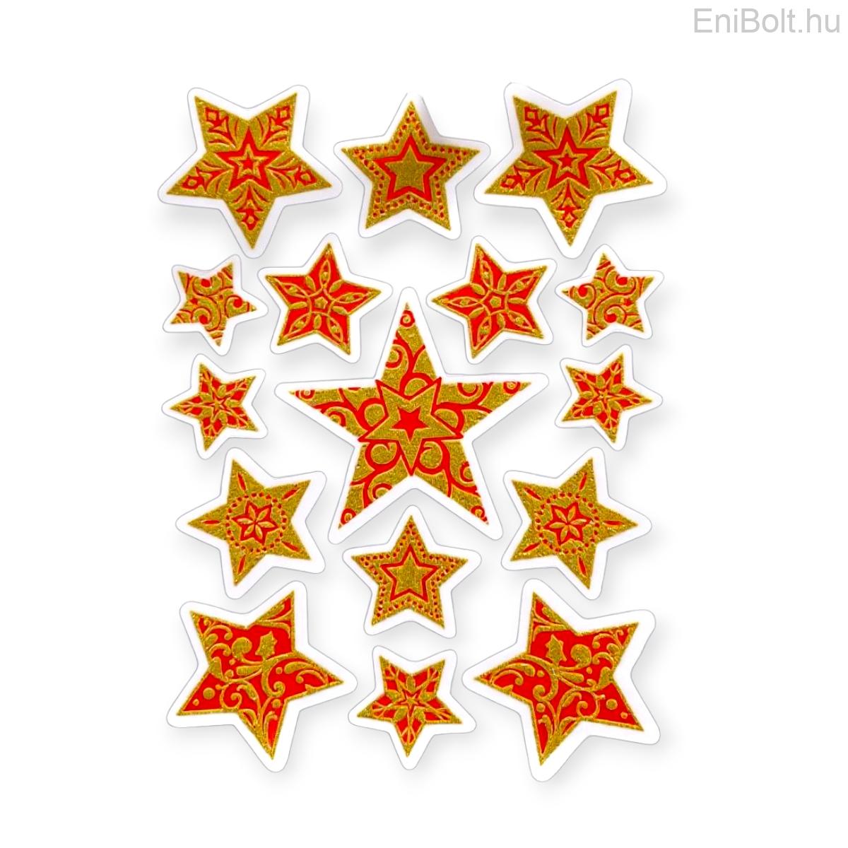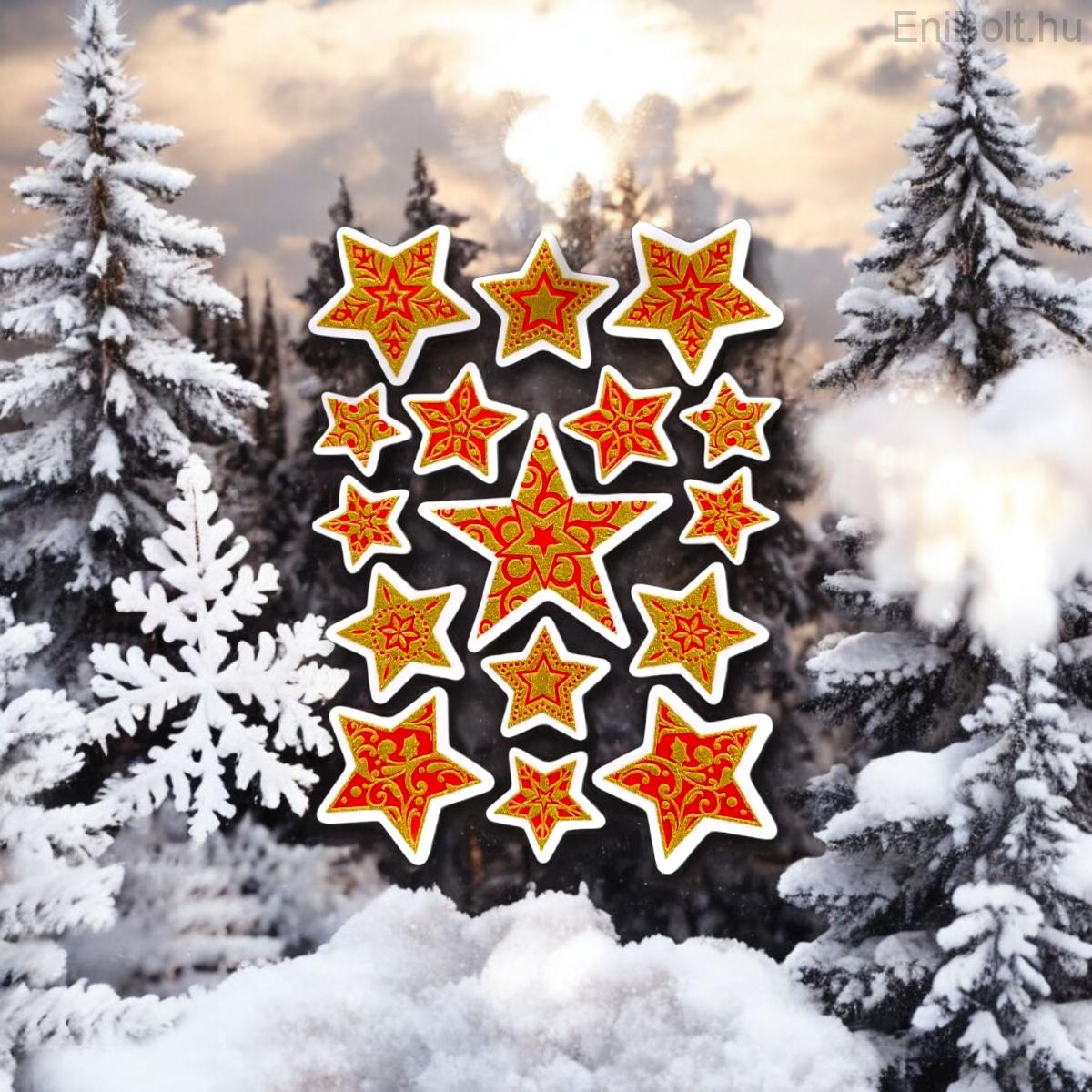 Kezdőlap » Karácsonyi dekorációk » Karácsonyi matricák » Red Stars karácsonyi ablakmatrica arany csillámmal 20x30cm