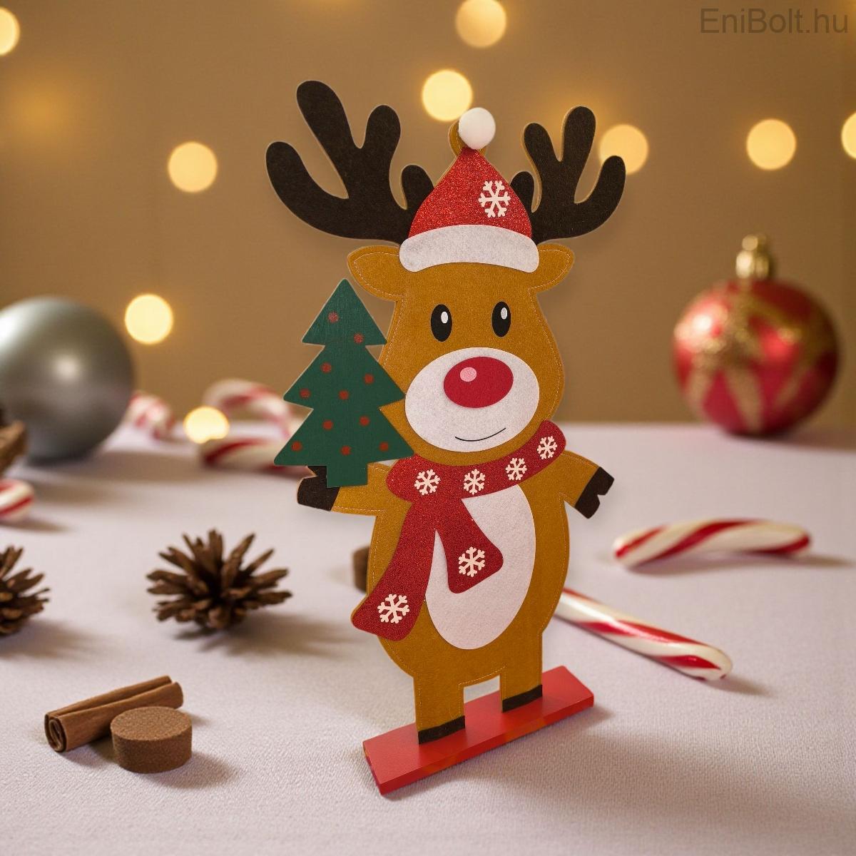Ez a filc rénszarvas figura tökéletes választás, ha természetes és vidám karácsonyi dekorációt keresel otthonodba.