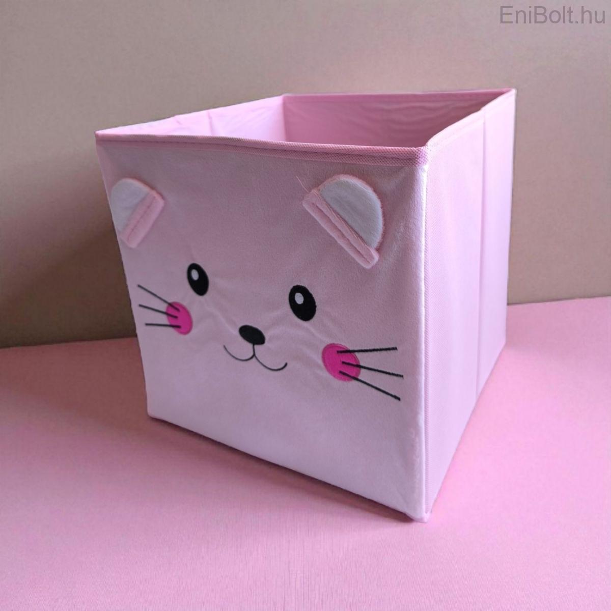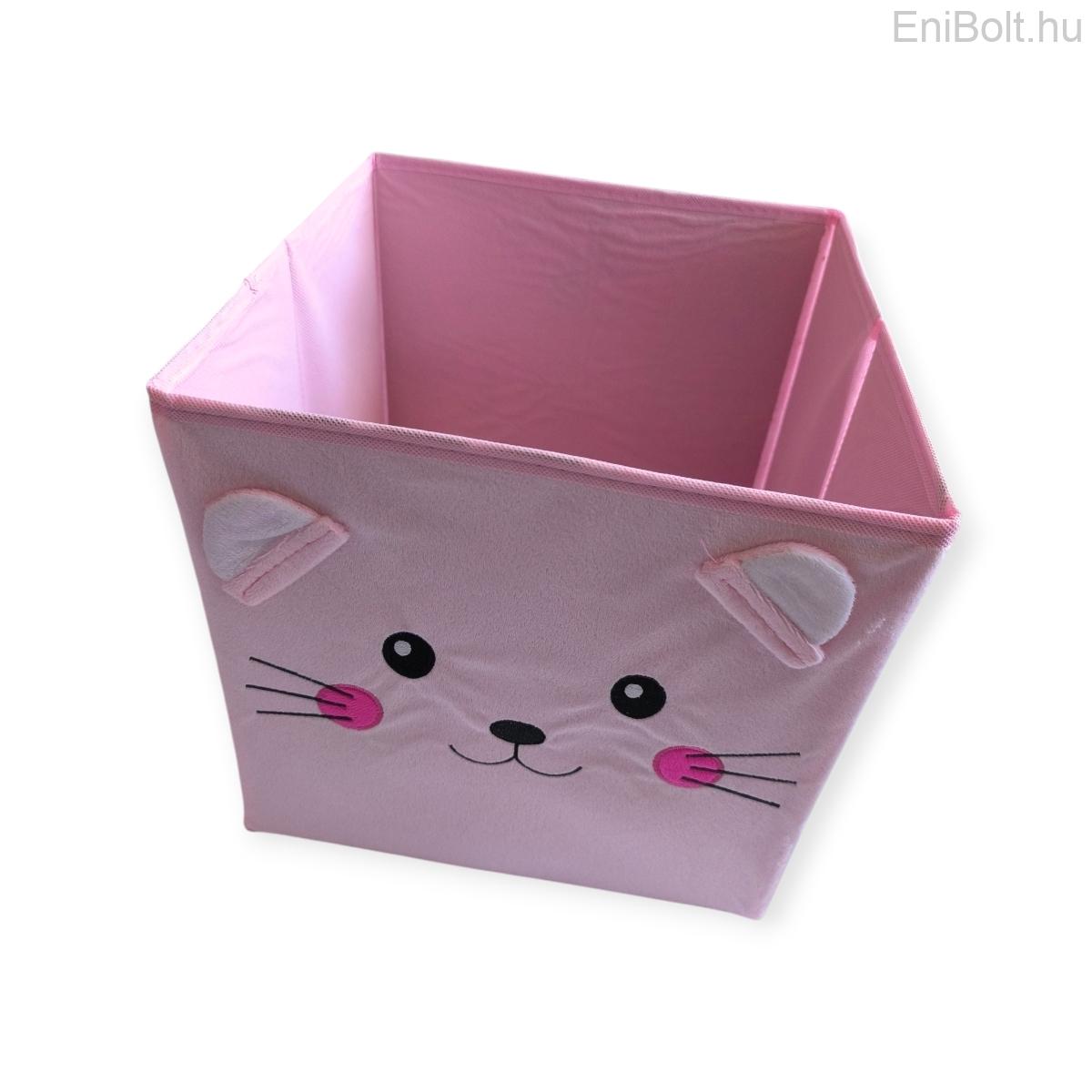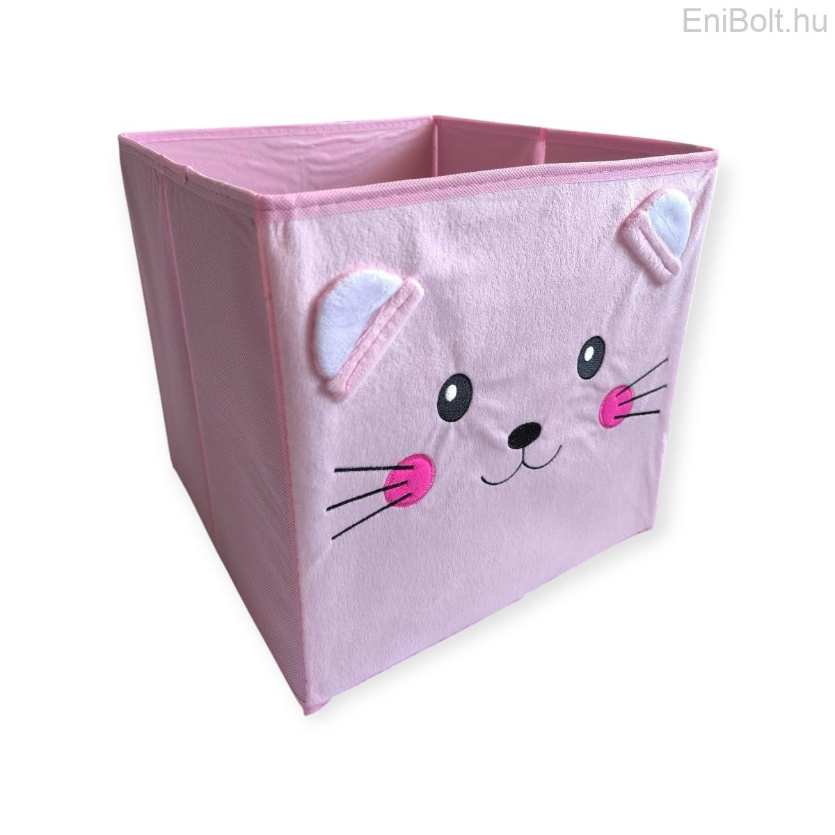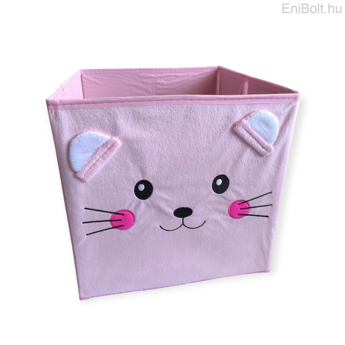 Stílusos és puha tapintású játéktároló doboz bársonyos rózsaszín felülettel és cuki macska mintával, kifejezetten lányoknak. Tökéletes választás a gyerekszoba rendszerezéséhez – ideális játékok, plüssök, ruhák vagy egyéb kisebb holmik tárolására. A 30×30×30 cm-es méret praktikus, könnyen elfér polcban vagy szekrényben, ugyanakkor dekoratív kiegészítője is lehet a helyiségnek.