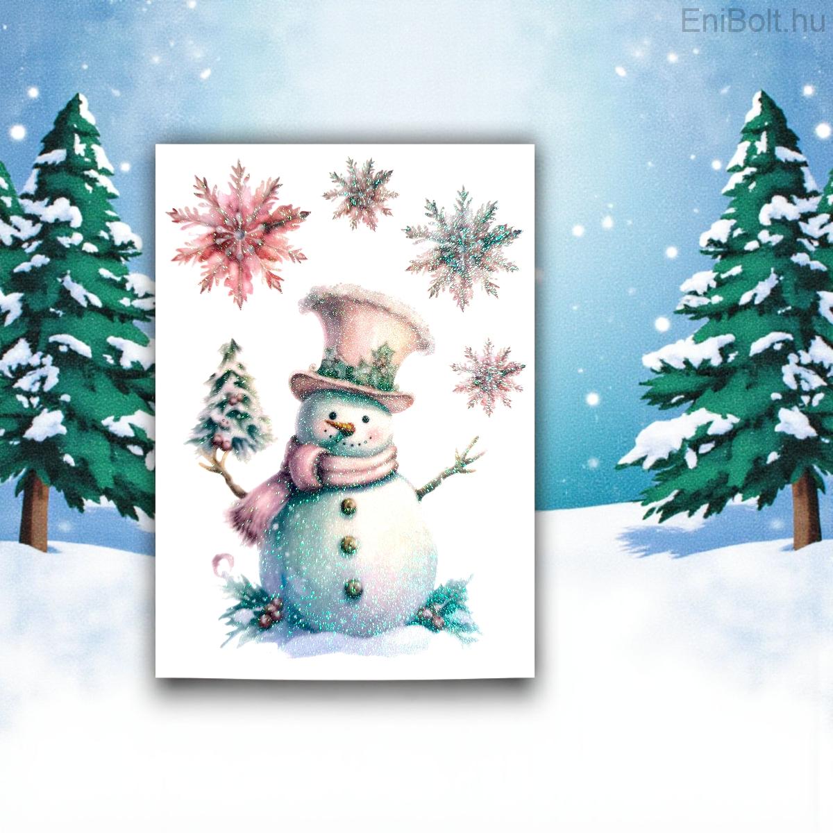 Karácsonyi matricák hóember és hópelyhek rózsaszín csillámmal