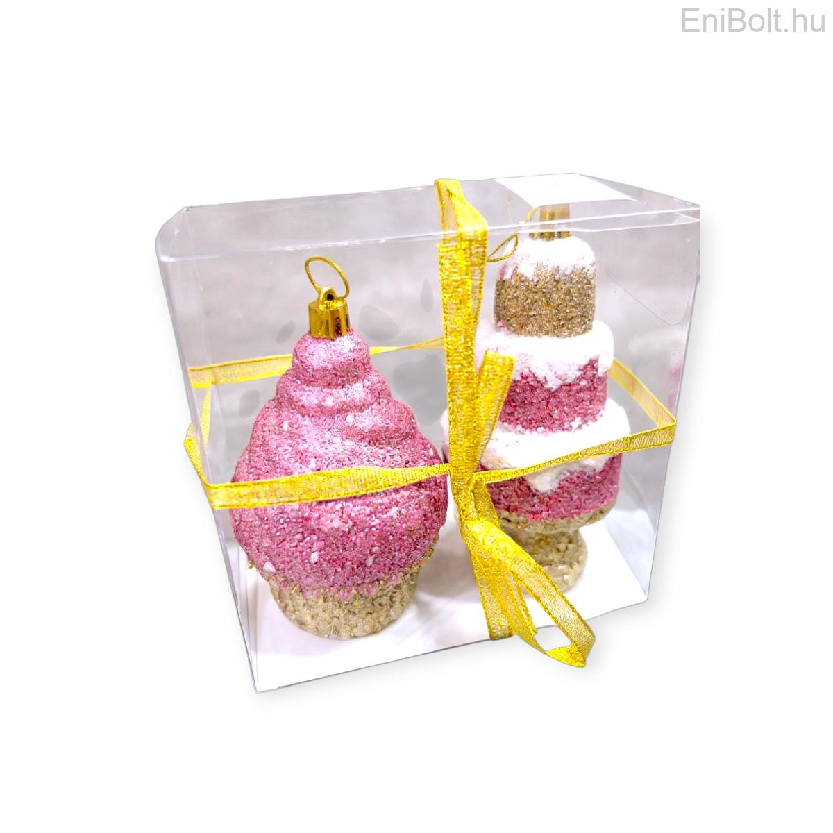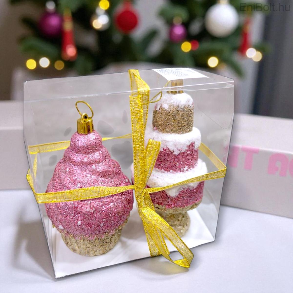 Rózsaszín cupcake és torta karácsonyfadísz szett – 2db