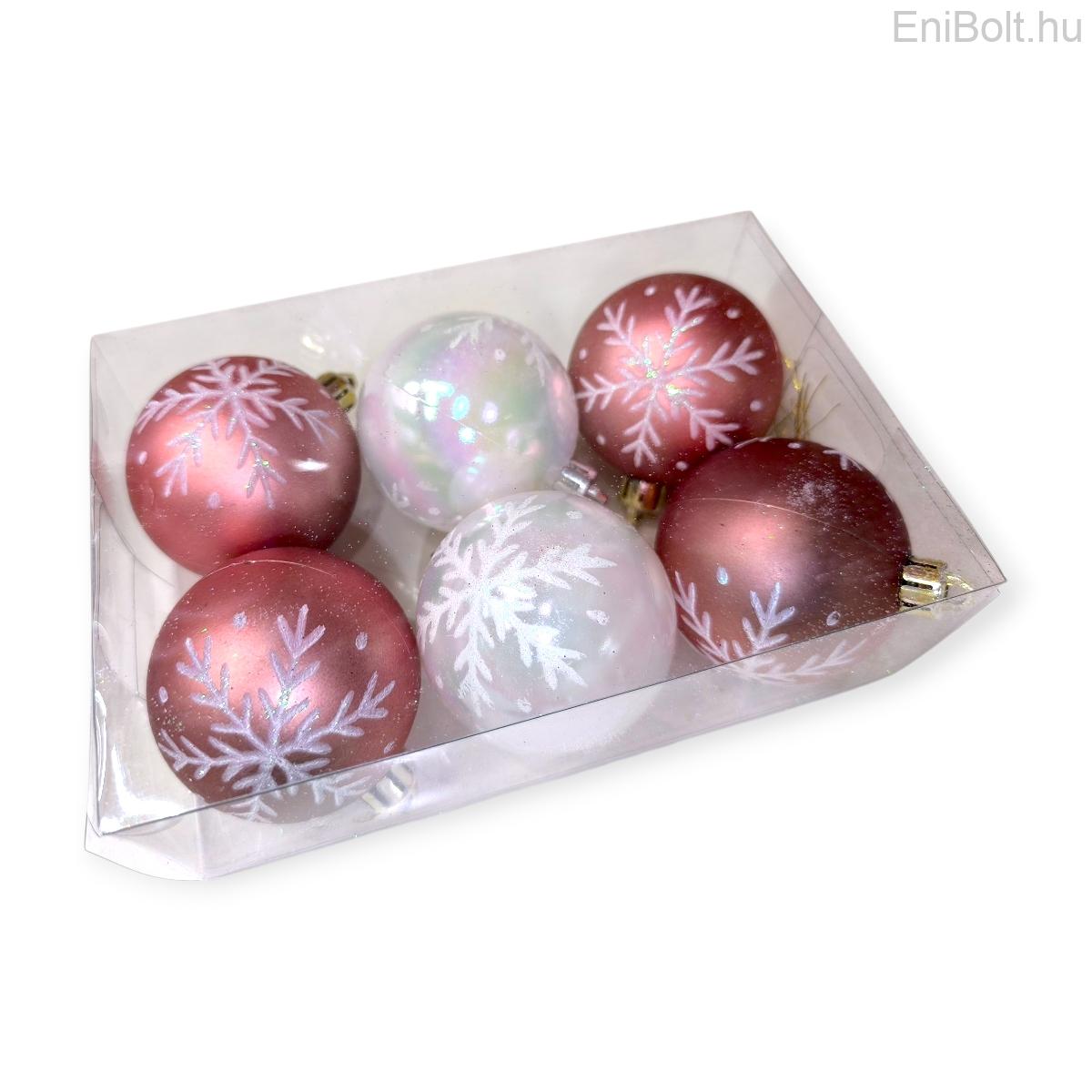Kezdőlap » Karácsonyi dekorációk » Karácsonyfa gömbök » Rózsaszín és pasztell » Rózsaszín-fehér karácsonyi gömb szett holografikus pelyhekkel 6cm - 6db