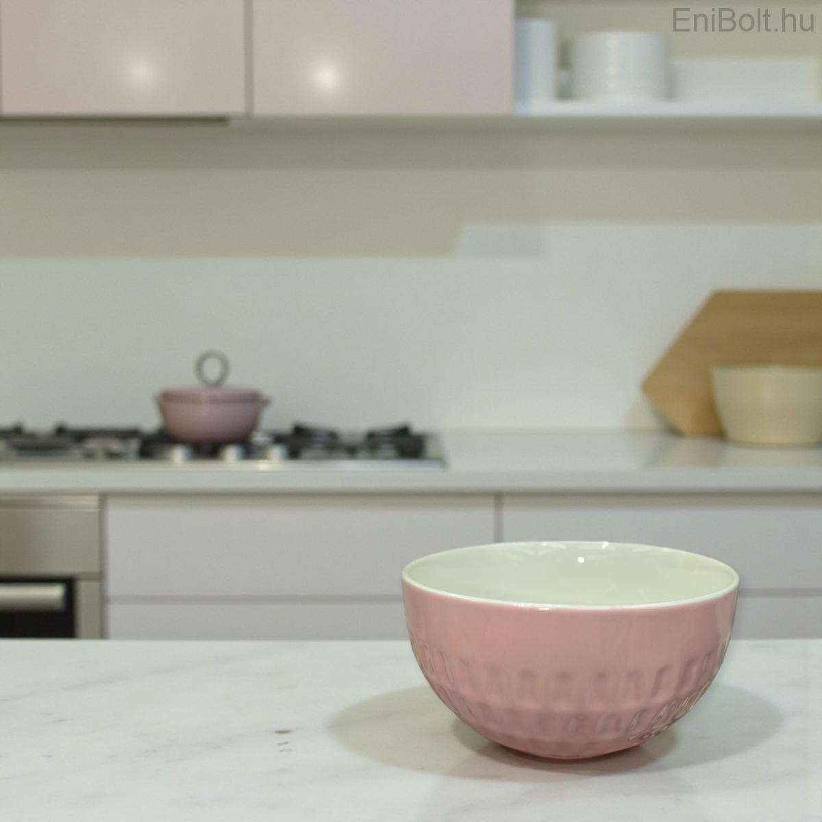 Rózsaszín-fehér kerámia leveses tál dombornyomott mintával – 630 ml