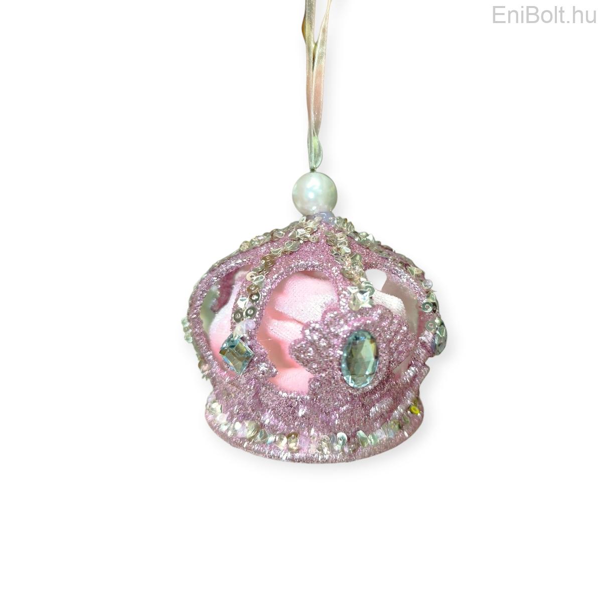 Kezdőlap » Karácsonyi dekorációk » Karácsonyfa gömbök » Rózsaszín és pasztell » Rózsaszín karácsonyfadísz korona csillámmal és kristályokkal Ø8x8 cm