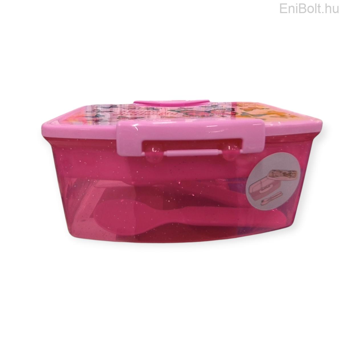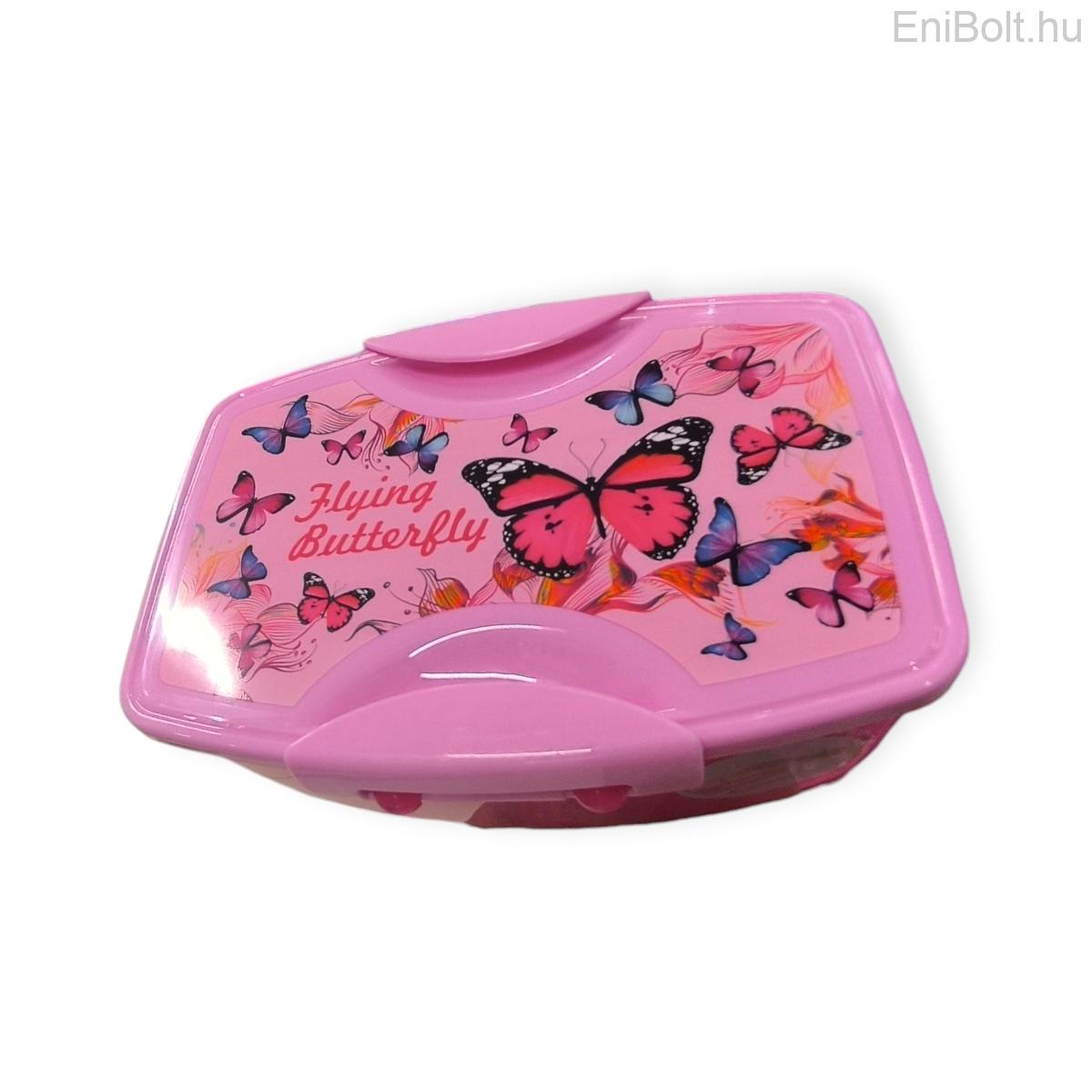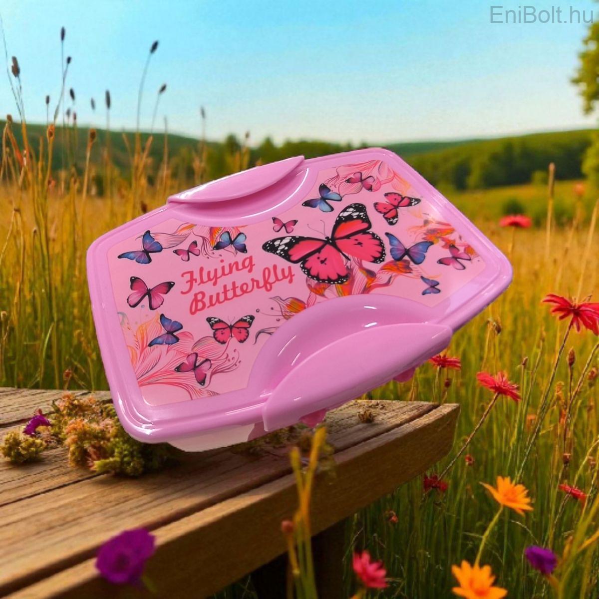 Kezdőlap » Otthon » Konyhai eszközök, kiegészítők » Poharak, tányérok, tálak » Rózsaszín pillangós uzsonnás doboz lányoknak – 1,1 L evőeszközökkel