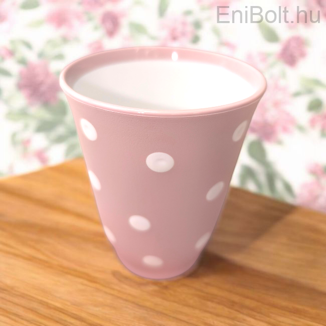 Kezdőlap » Otthon » Konyhai eszközök, kiegészítők » Poharak, tányérok, tálak » Rózsaszín pöttyös műanyag pohár – 350 ml
