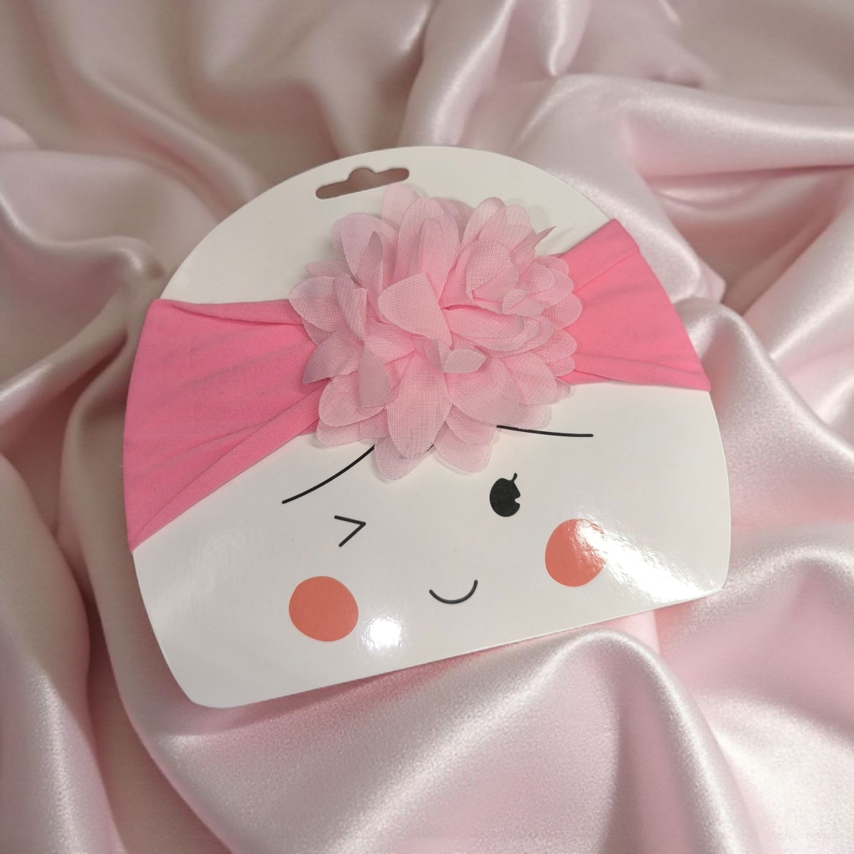 Rózsaszín széles fejpánt virággal – gyerek hajpánt kislányoknak