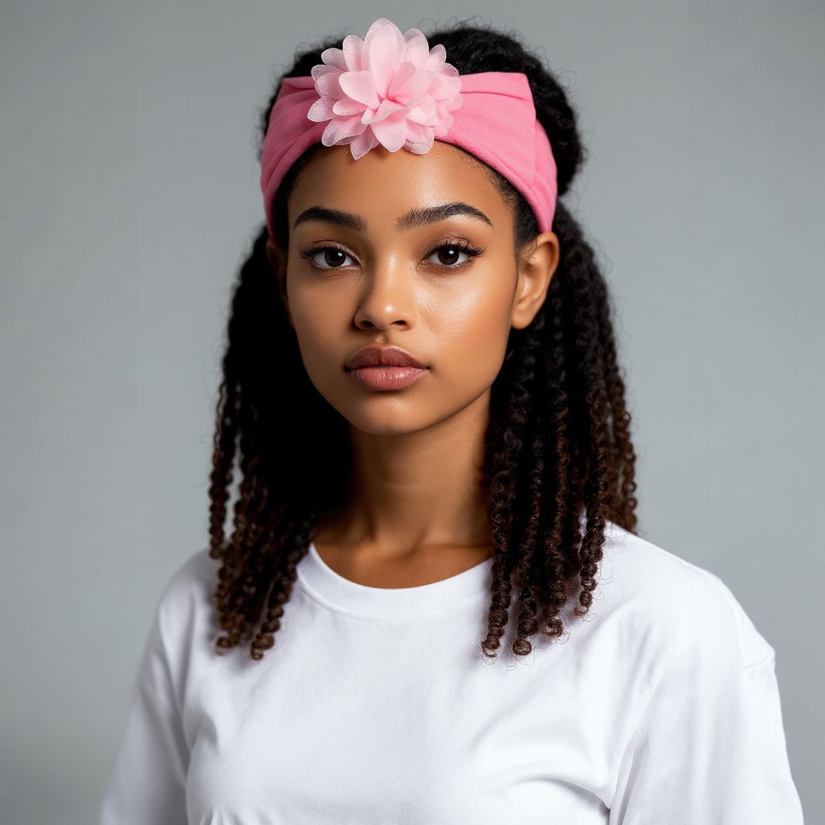 Bájos rózsaszín széles fejpánt kislányoknak, dekoratív virágdísszel. Kényelmesen illeszkedik, és tökéletes választás mindennapi viselethez, ünnepi alkalmakhoz vagy fotózásokhoz.