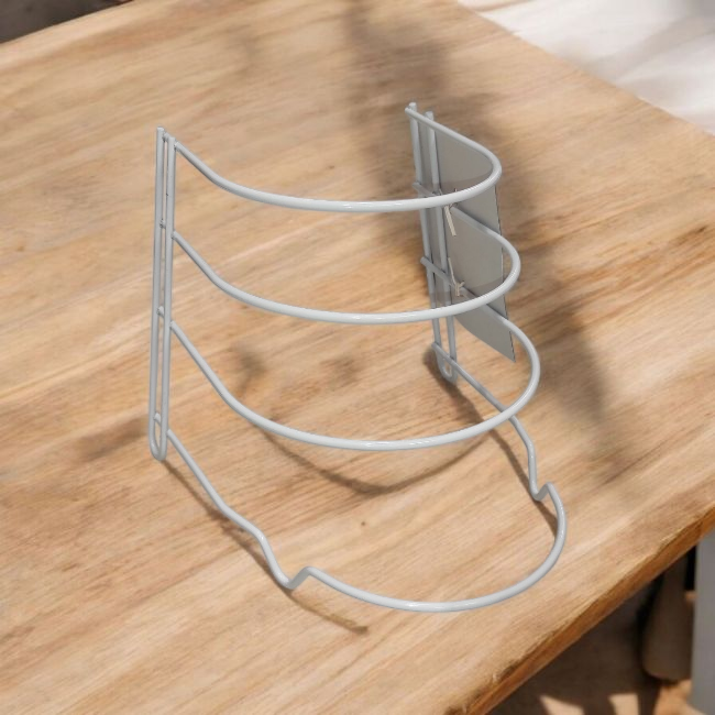 Praktikus fém serpenyőállvány 3 különböző méretű serpenyő tárolására. Segít rendszerezni a konyhai eszközöket, miközben megóvja az edényeket a karcolódástól és sérülésektől. Kompakt méretének köszönhetően könnyedén elfér a konyhaszekrényben, és helyet szabadít fel a munkalapon.