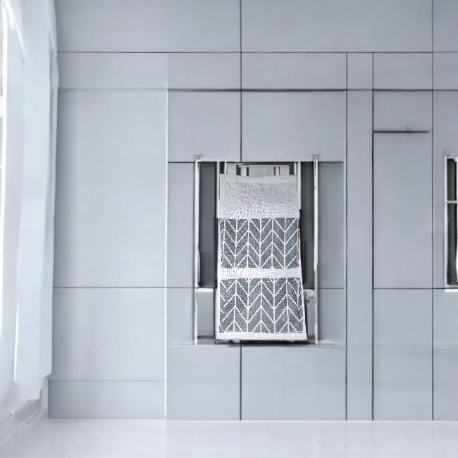 Ez a skandináv stílusú, törtfehér és szürke színű falra akasztható tároló praktikus és dekoratív megoldás a mindennapi apróságok rendszerezésére. Két 18x13 cm-es zsebbel rendelkezik, így ideális kozmetikumok, kulcsok, töltők vagy más kisebb tárgyak tárolására a fürdőszobában, hálószobában vagy előszobában.