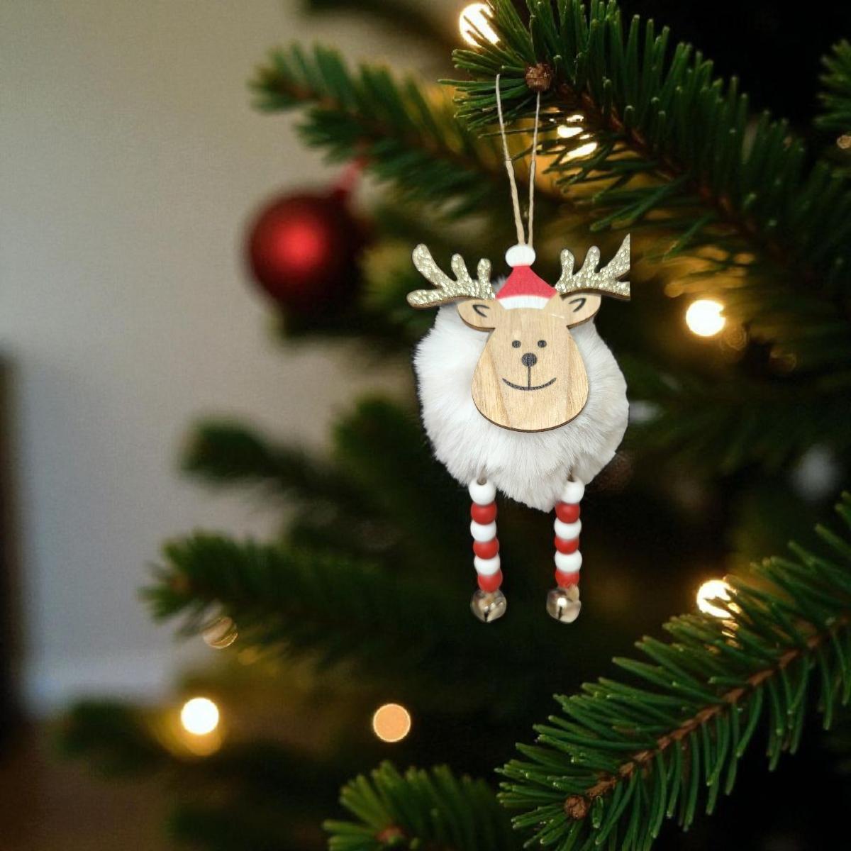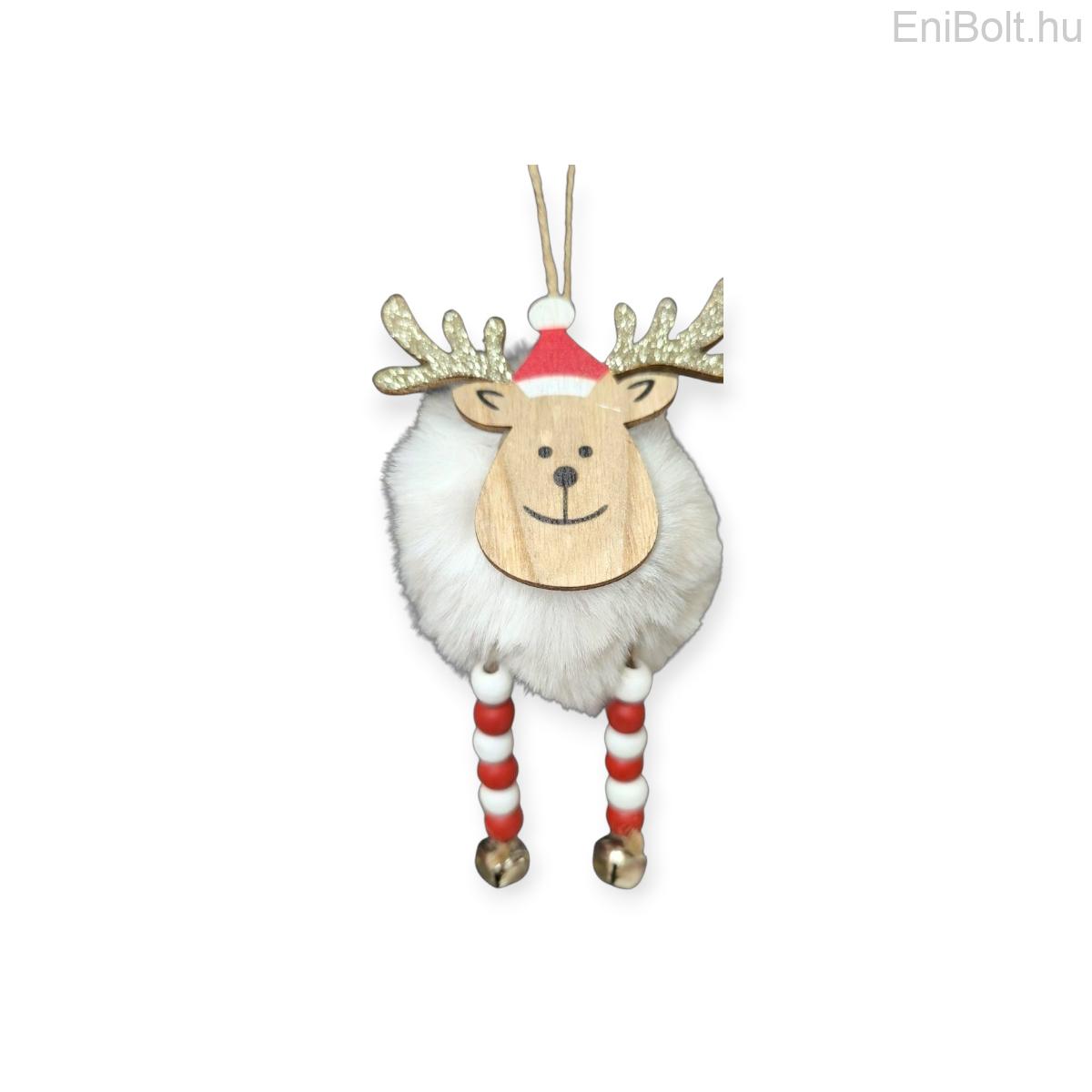 Hangulatos, fából készült szarvas alakú karácsonyfadísz arany csillámmal, fehér pomponnal és kis harangokkal. Tökéletes választás, ha természetes, mégis elegáns megjelenést szeretnél a karácsonyfán. Kiválóan illik a klasszikus és skandináv stílusú dekorációkhoz is.