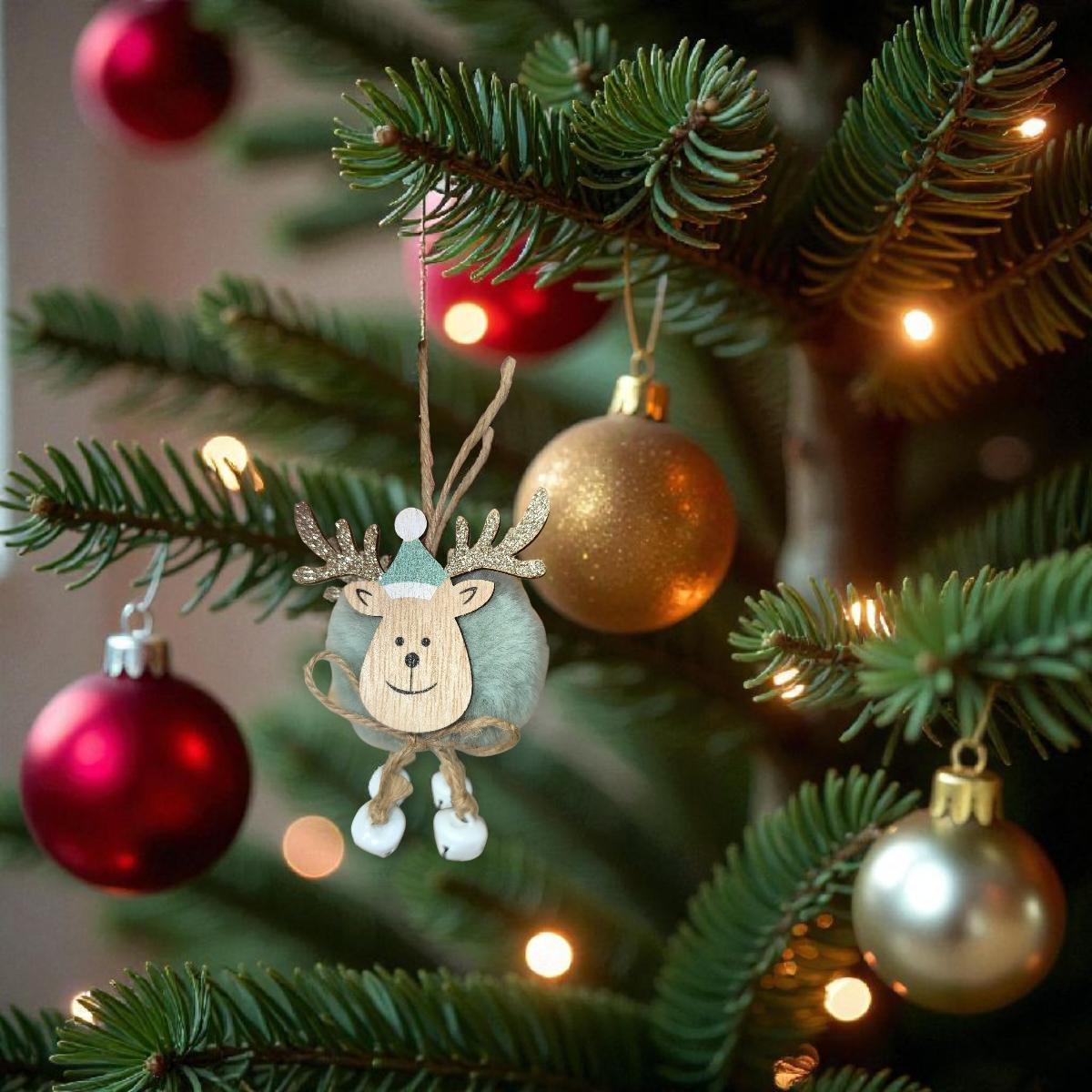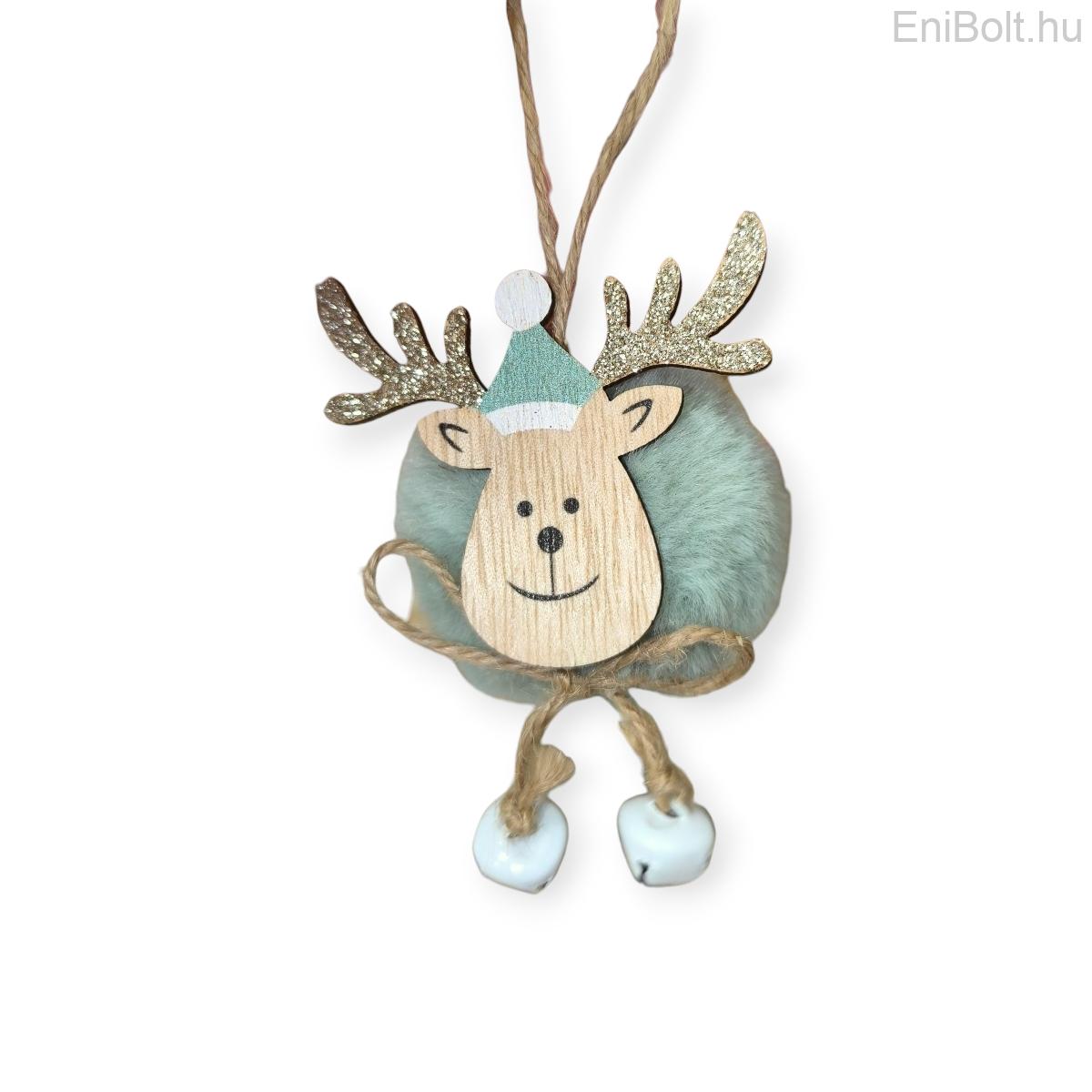 Kezdőlap » Karácsonyi dekorációk » Fából készült díszek » Szarvas karácsonyfa dísz – mentazöld szőrme, 17 cm