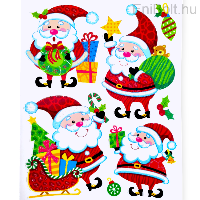 Tedd emlékezetessé az idei karácsonyt ezekkel a színes, csillogó Mikulás mintás dekorációs matricákkal!