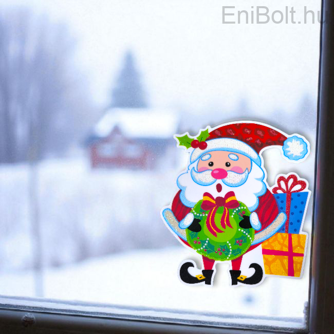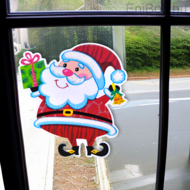 Kezdőlap » Karácsonyi dekorációk » Karácsonyi matricák » Színes csillogó karácsonyi ablakmatrica – Mikulás mintával, 30x42 cm
