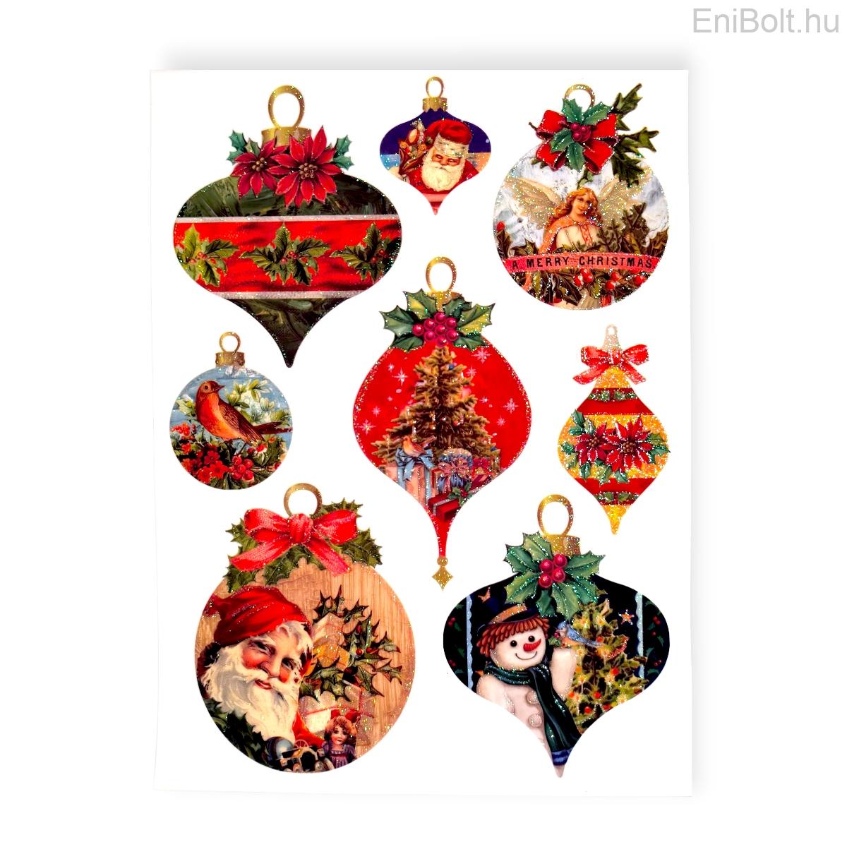 Színes gömbös karácsonyi ablakmatrica – vintage csillogó dekor 20×30 cm