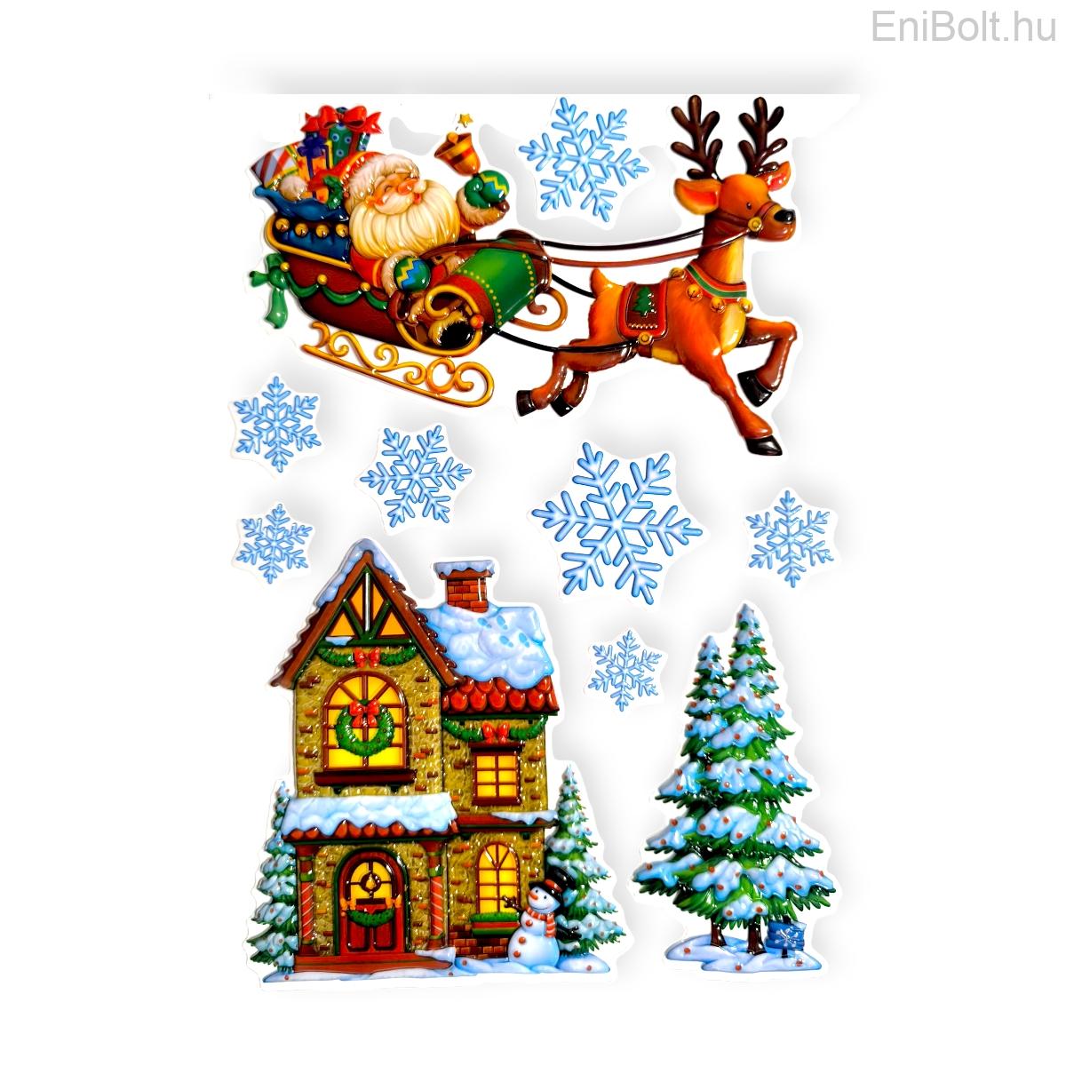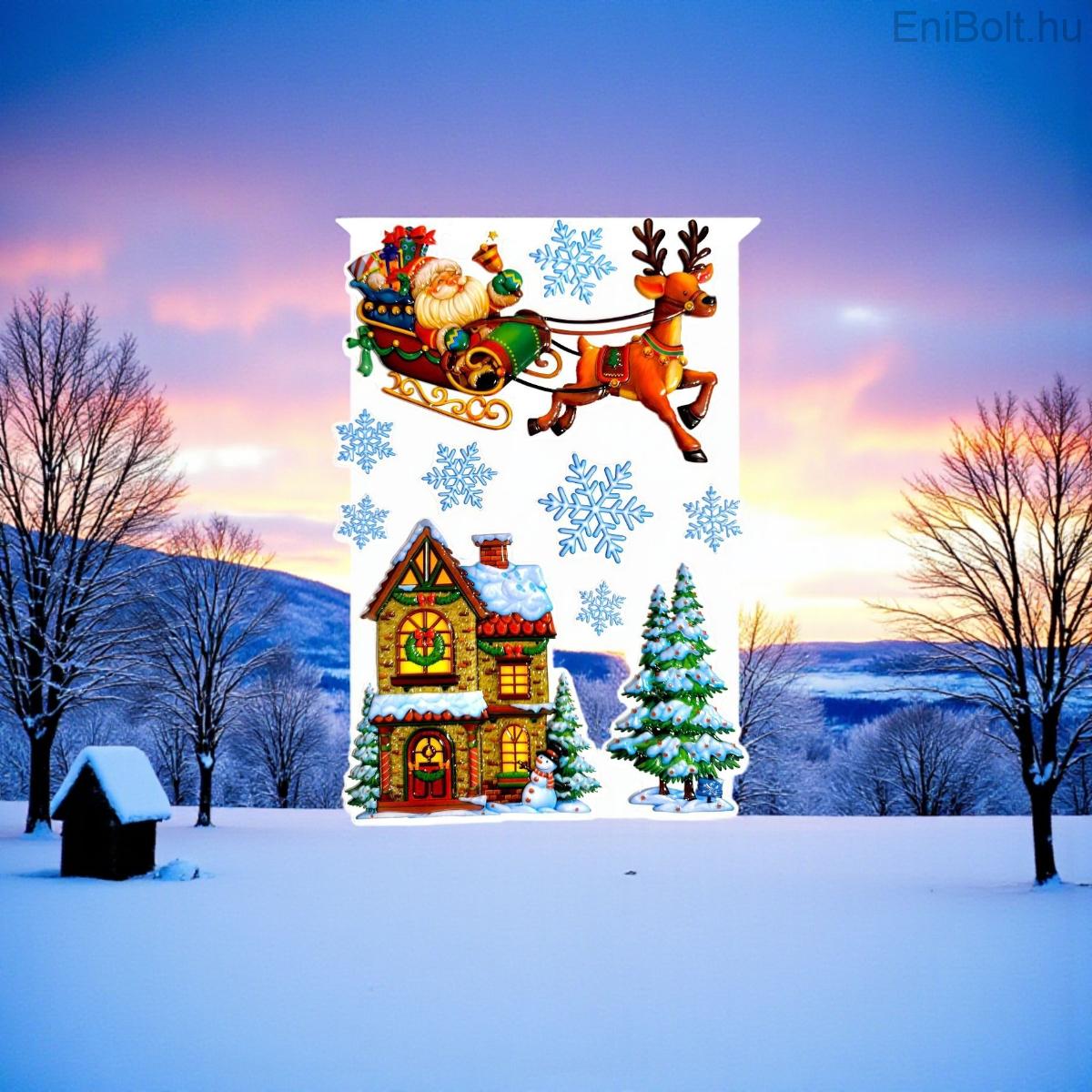 Dobd fel otthonod ezzel a színes karácsonyi matricával, amely házikót, fát, Mikulást szánnal és hópelyheket ábrázol. Tökéletes választás ablakok és tükrök díszítésére, hogy igazán meghitt és ünnepi légkört teremts.