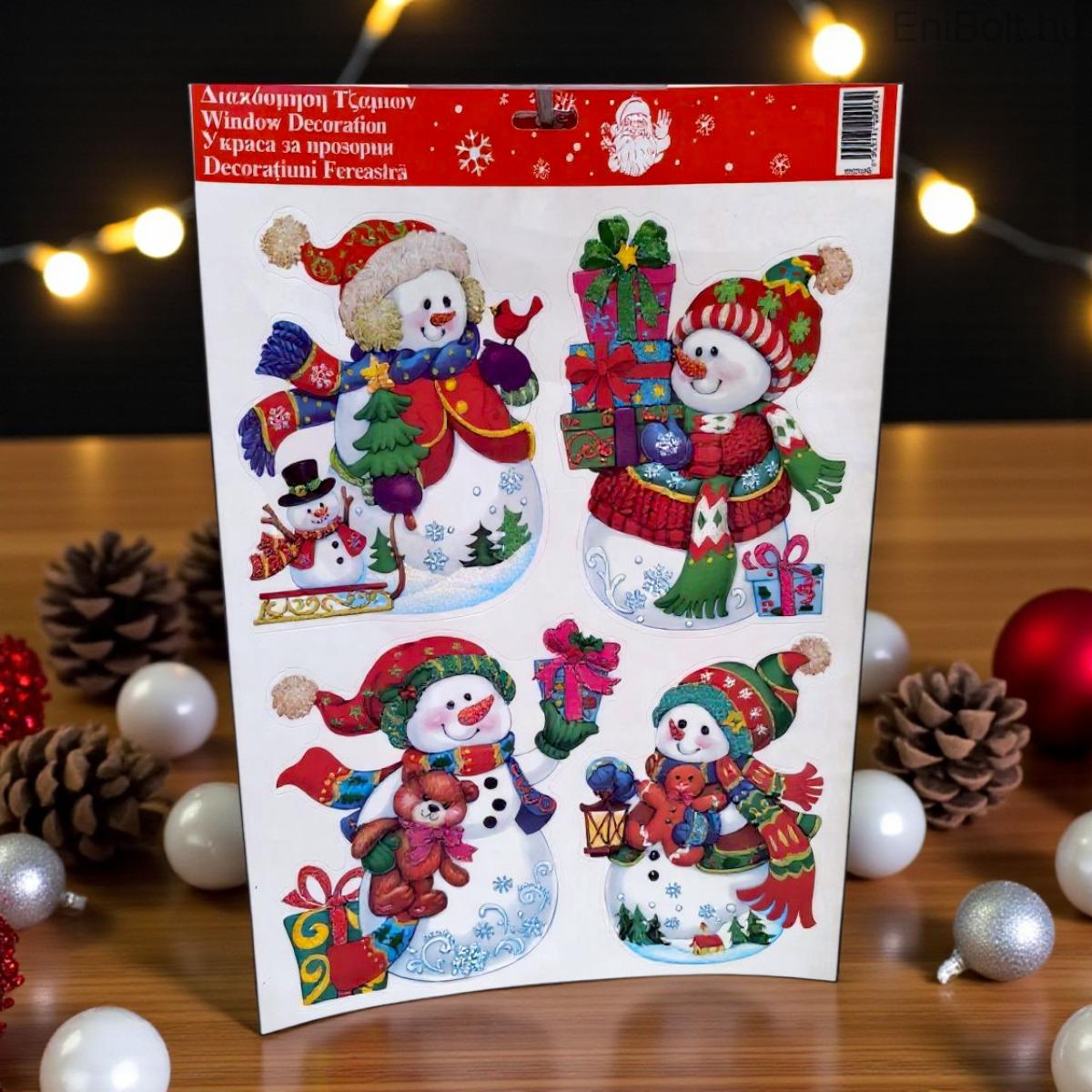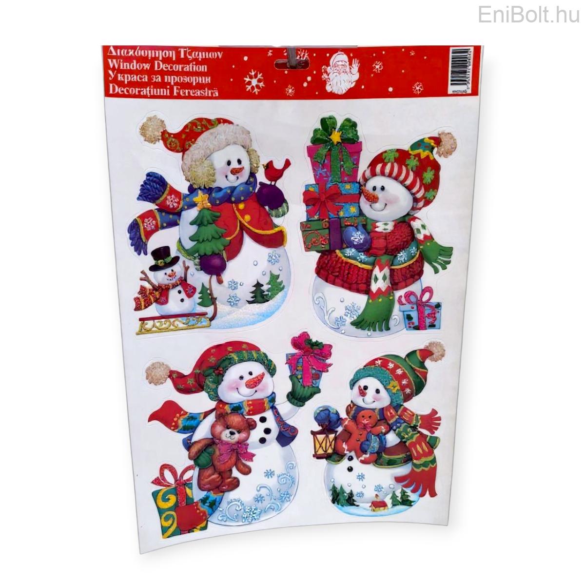Kezdőlap » Karácsonyi dekorációk » Karácsonyi matricák » Színes hóemberes karácsonyi ablakmatrica csillogó ajándékokkal 30x42cm