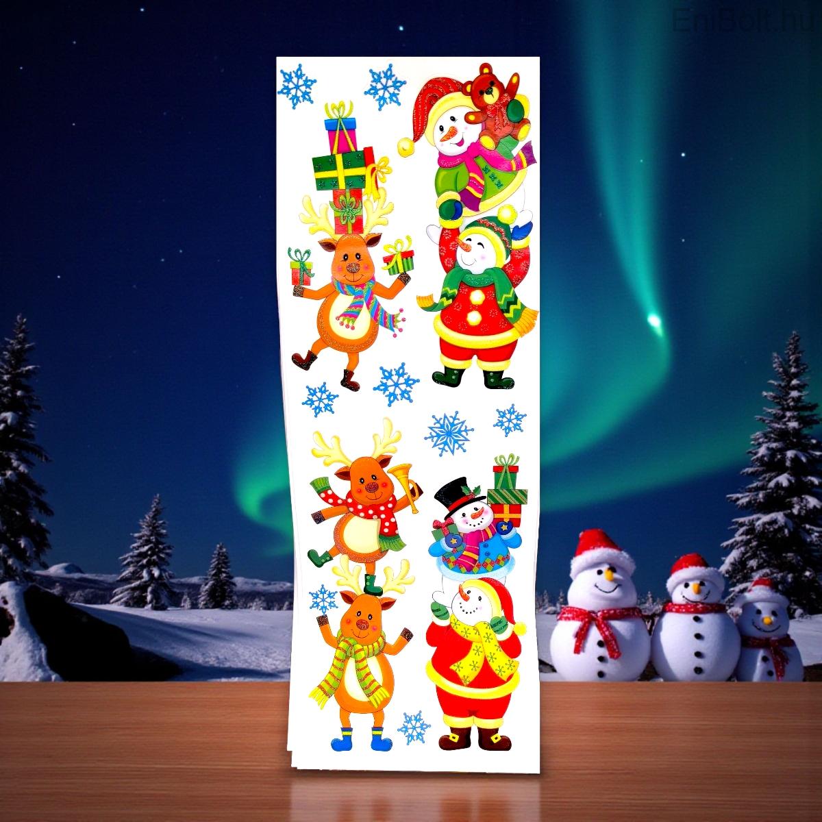 Tedd különlegessé az ünnepi dekorációt ezzel a színes karácsonyi ablakmatricával, amely hóembert és rénszarvast ábrázol csillámos részletekkel. Ideális ablakokra, tükrökre vagy üvegfelületekre, hogy mesebeli, ünnepi hangulatot teremts az otthonodban. Egyszerűen felhelyezhető és eltávolítható maradandó nyom nélkül.