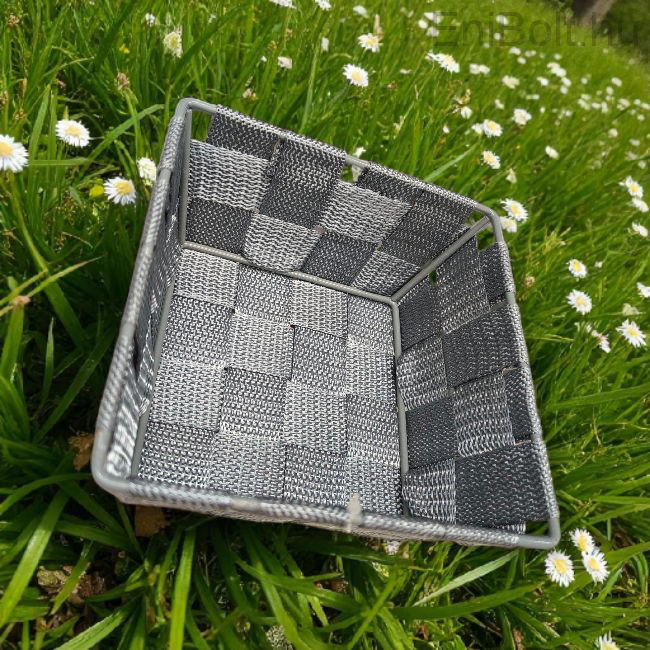 Kezdőlap » Rendszerezés és tisztítás » Tárolás és rendszerezés » Fiókrendezők és elválasztók » Szürke fonott hatású tárolókosár fémvázzal – 14×14×6,5 cm