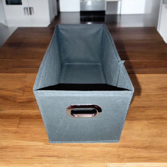 Kezdőlap » Rendszerezés és tisztítás » Tárolás és rendszerezés » Fiókrendezők és elválasztók » Szürke textil tároló doboz 15x31x15 cm – Nyitott tároló polcokra