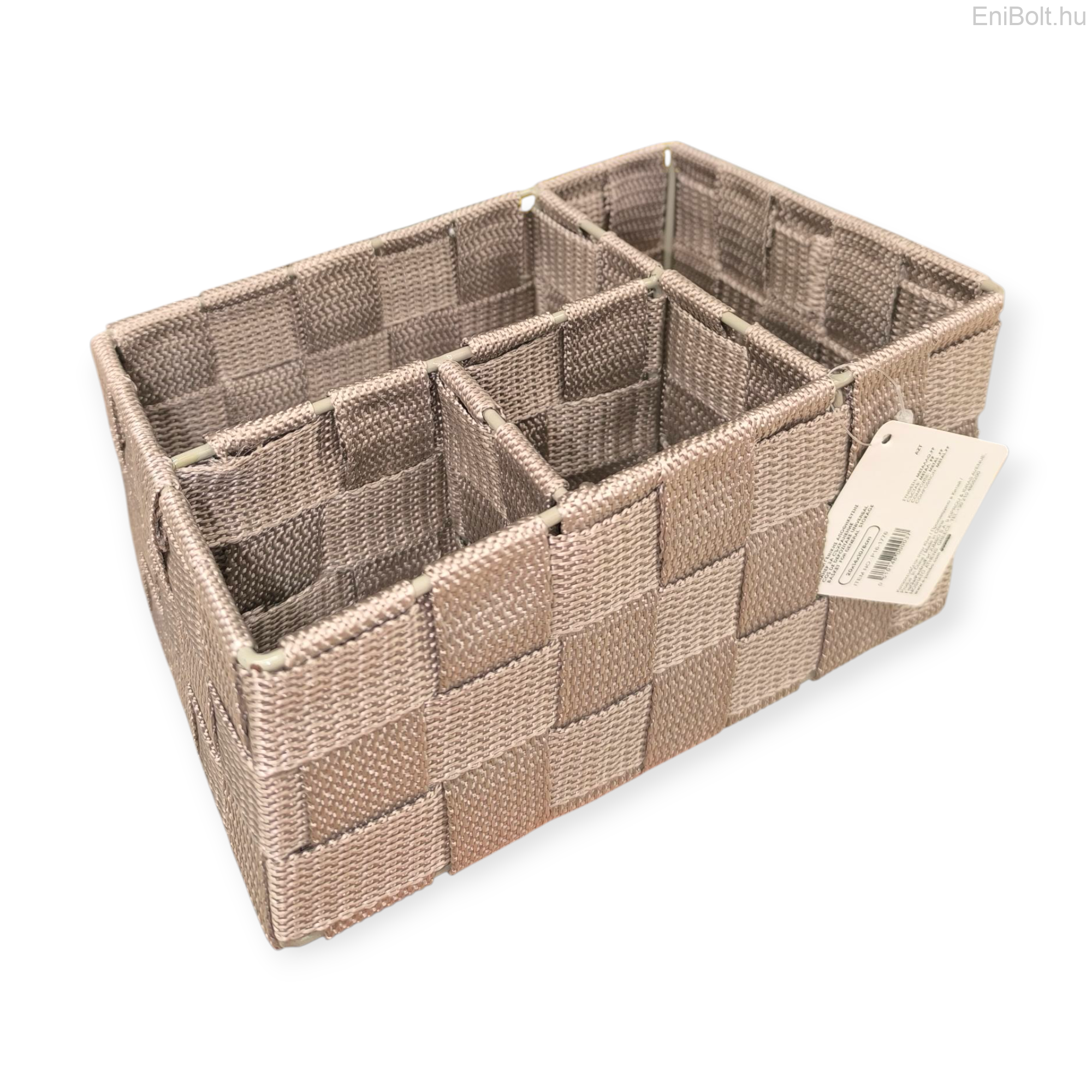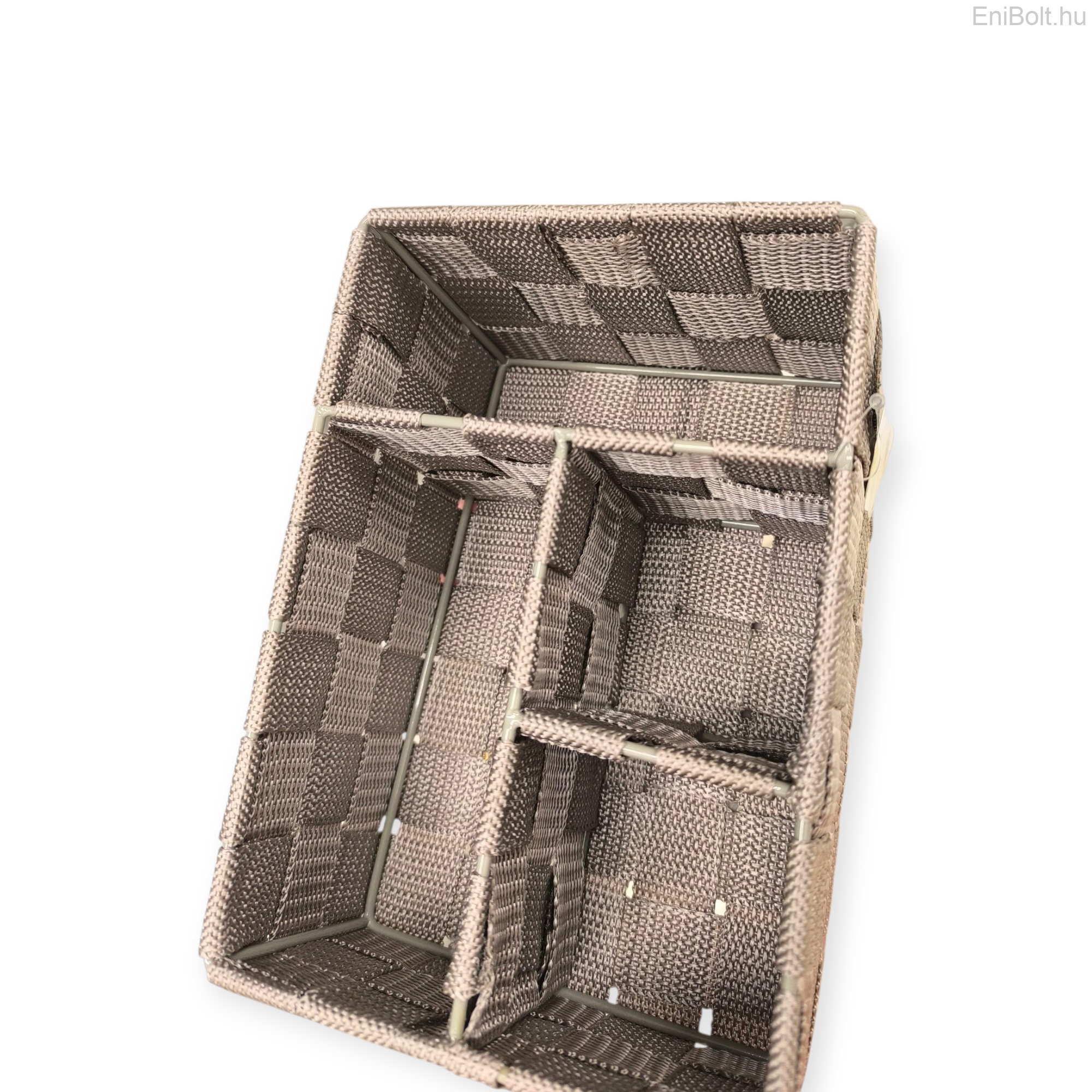 Szürkésbarna rattan hatású rendszerező kosár 4 rekesszel – fém vázzal