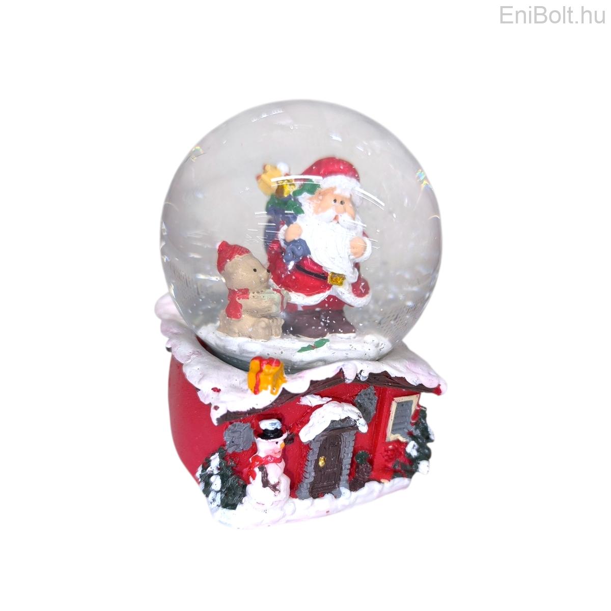 Téli Házikó zenélő hógömb 8cm