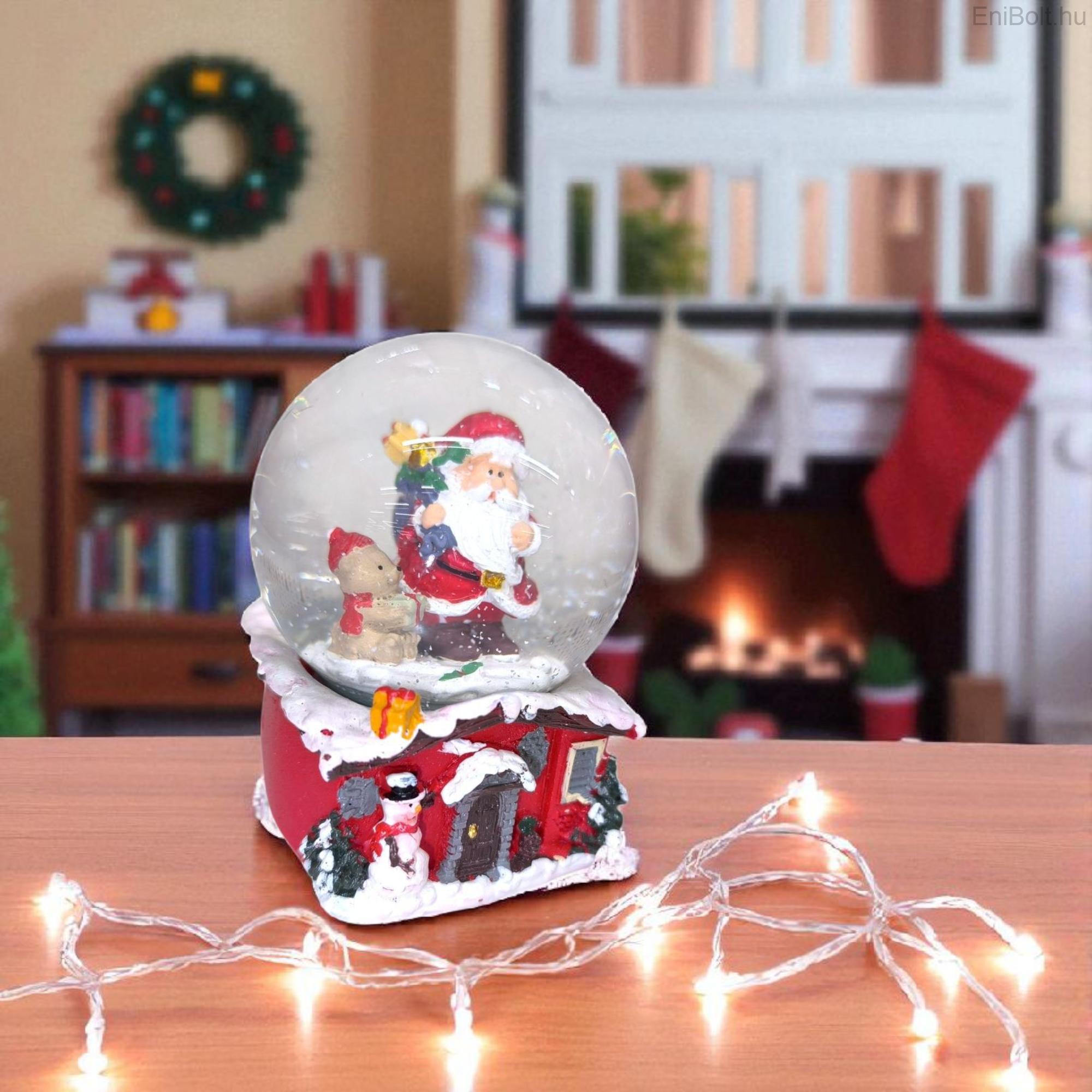 A Téli Házikó hógömb meghitt karácsonyi hangulatot varázsol otthonodba. A díszben a Mikulás és a gyerekek láthatók a karácsonyfa mellett, ajándékokkal és aprólékosan kidolgozott házikó alapzattal. A hógömb zenél, így még varázslatosabbá teszi az ünnepi légkört.