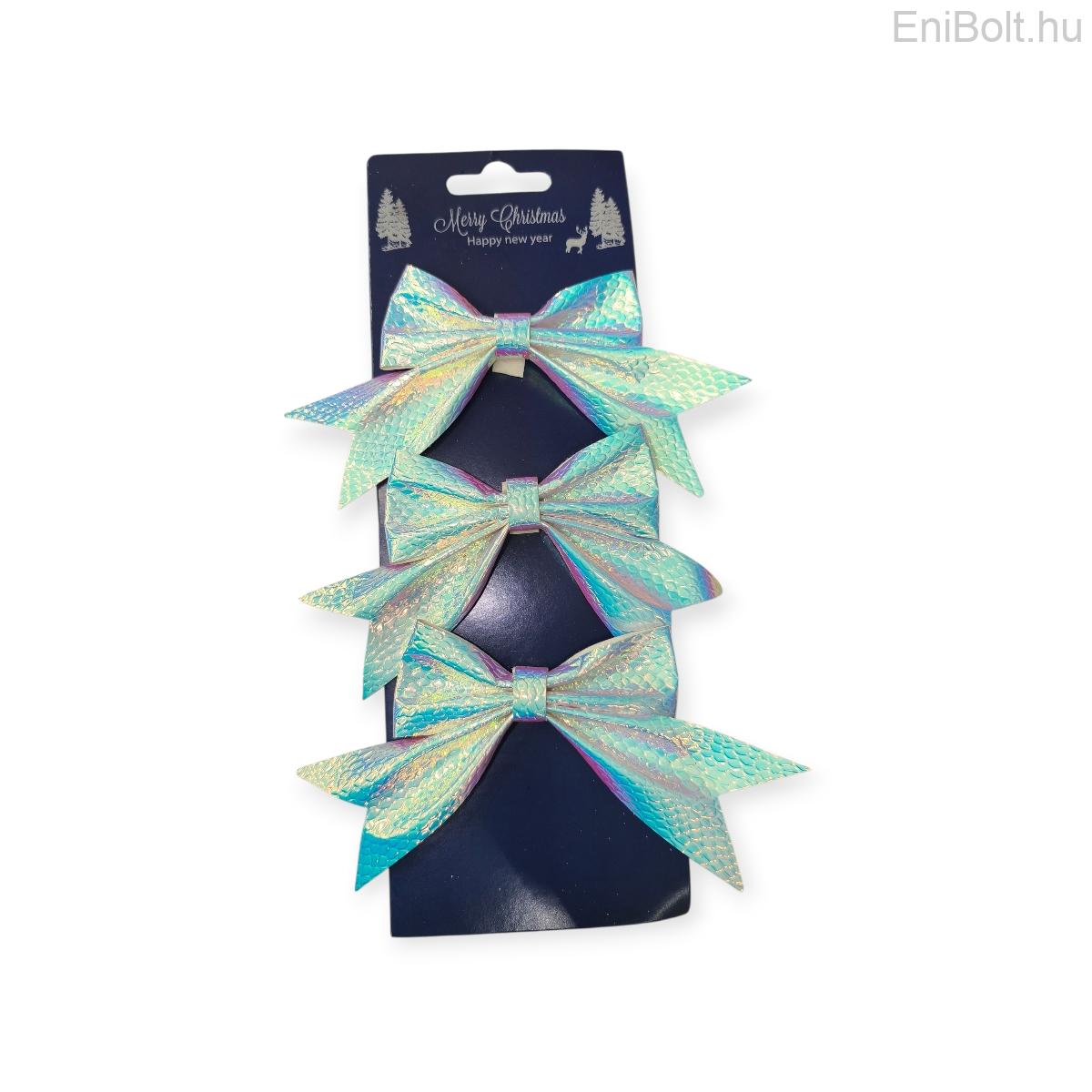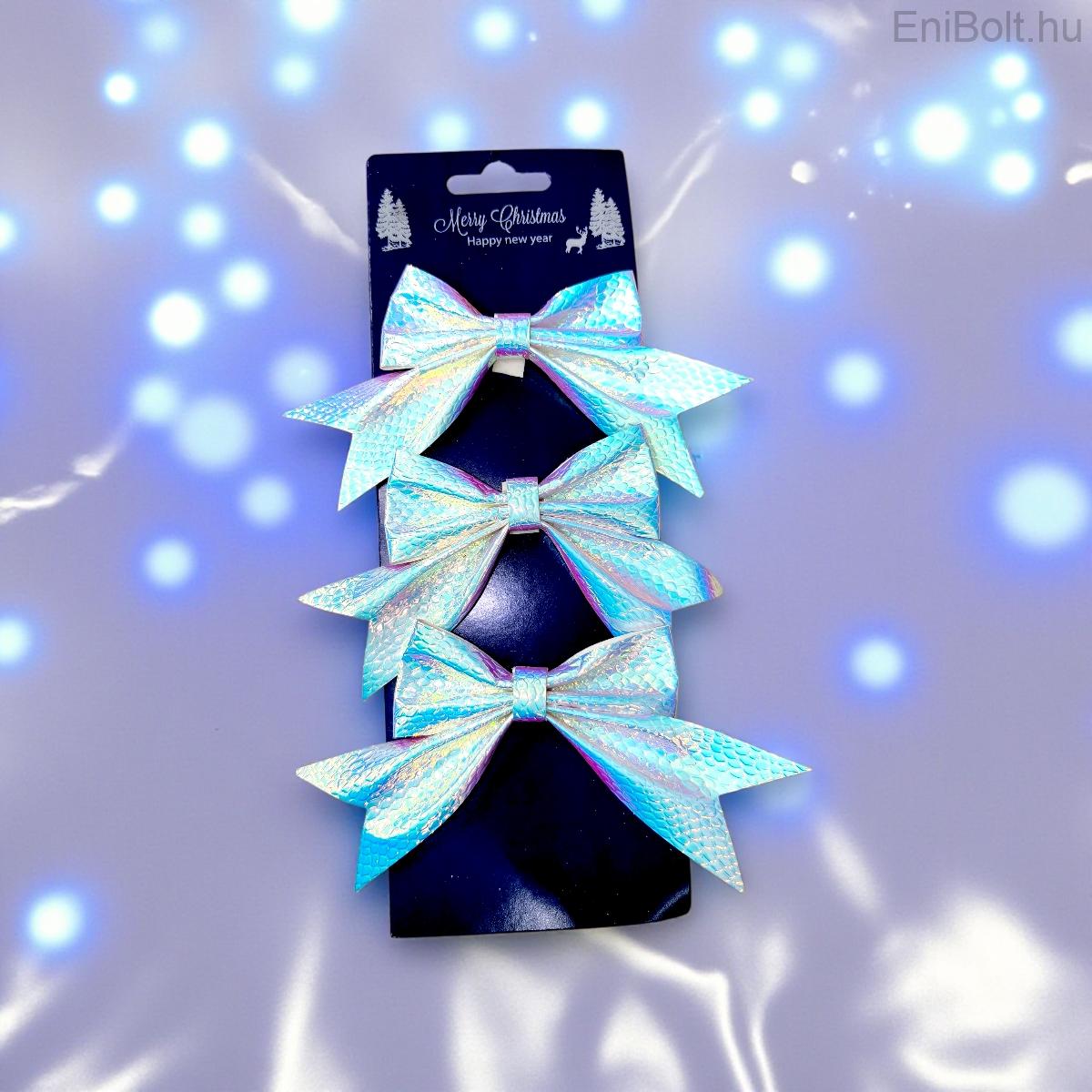 Téli csillogás – dekoratív fehér irizáló karácsonyi masnik 3 db 15 cm
