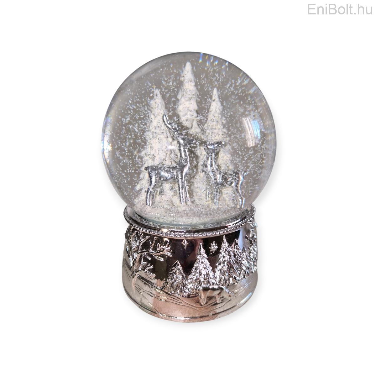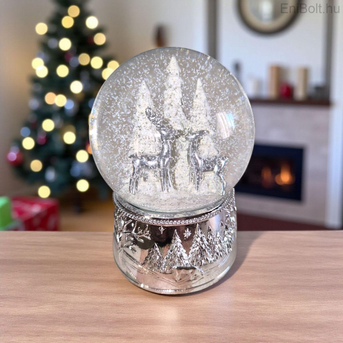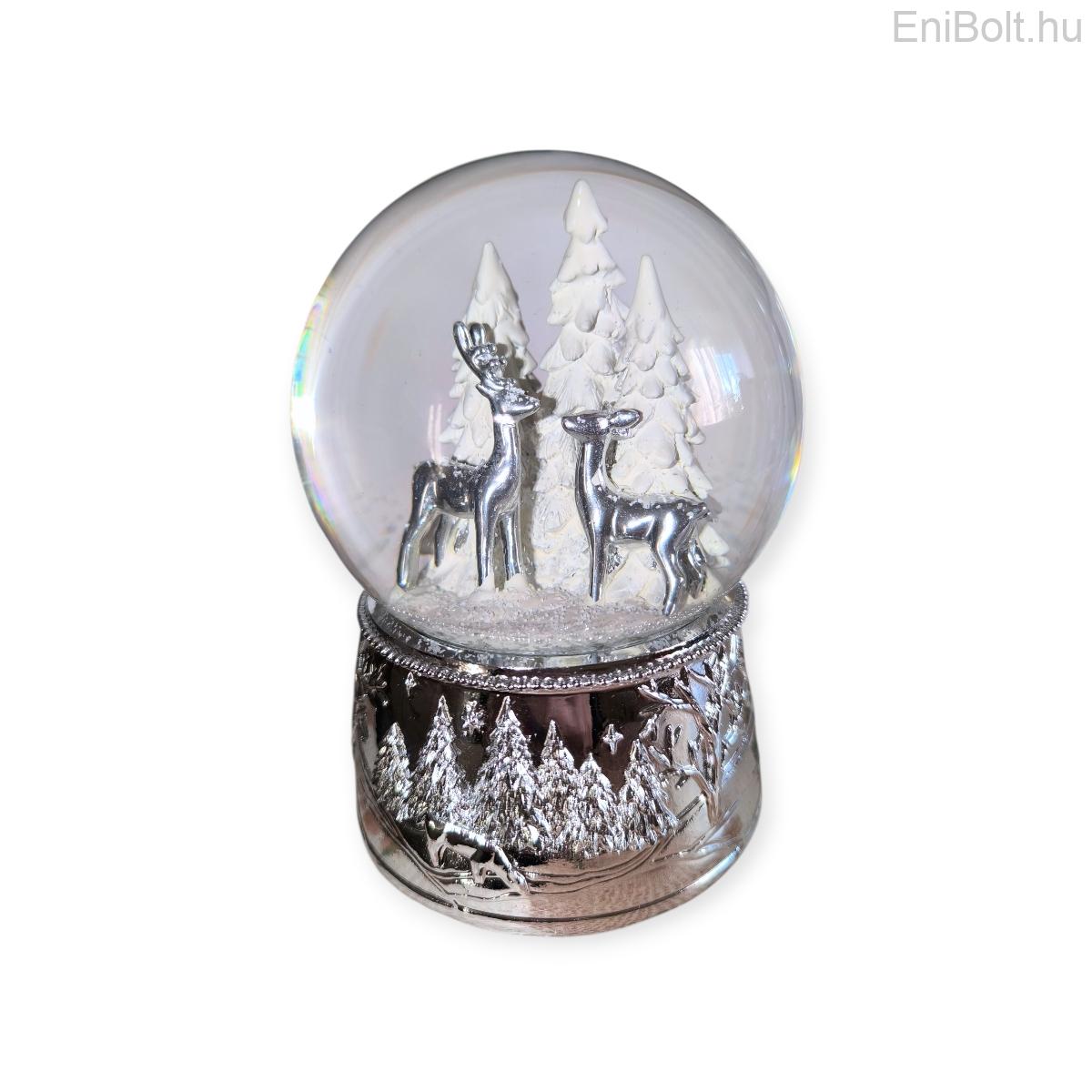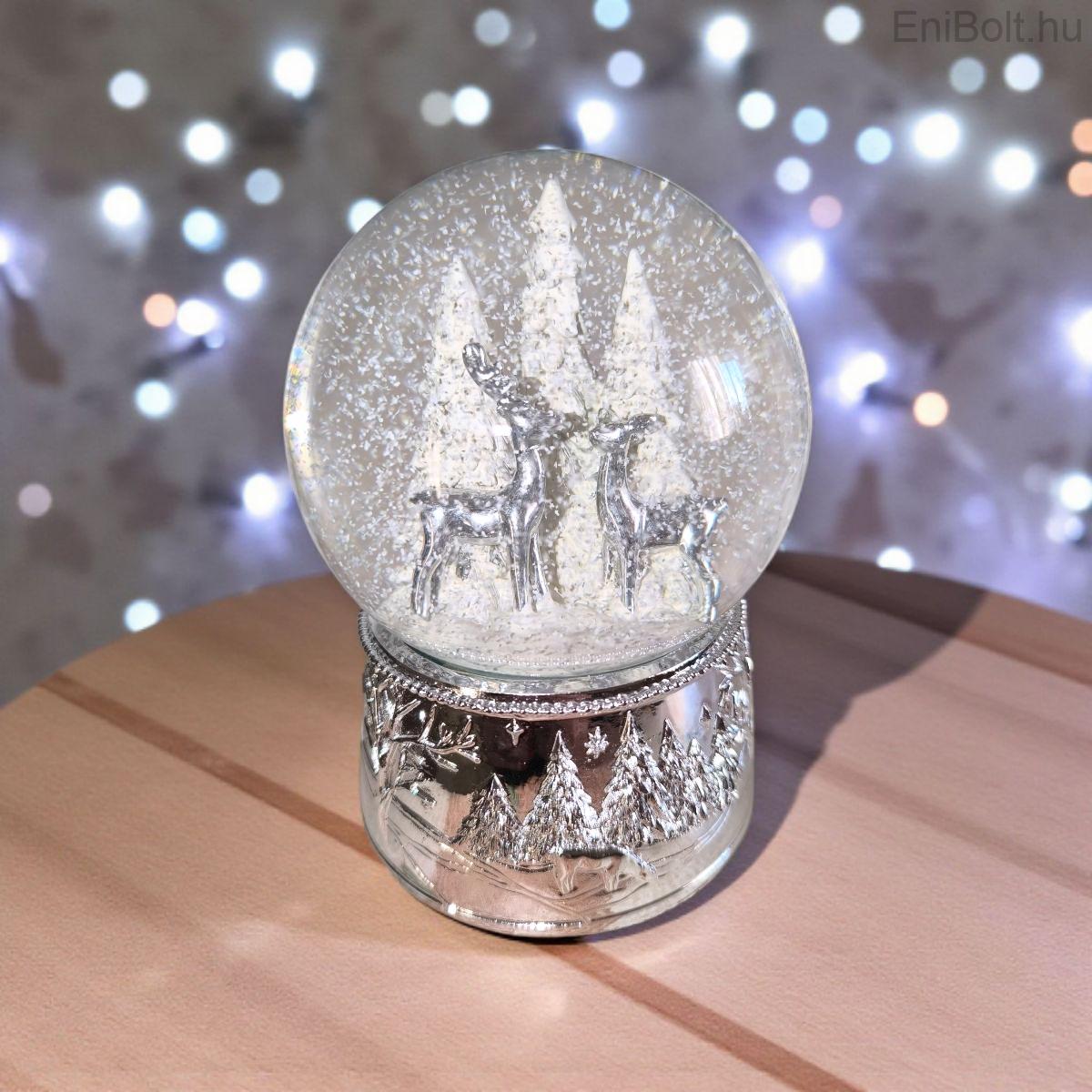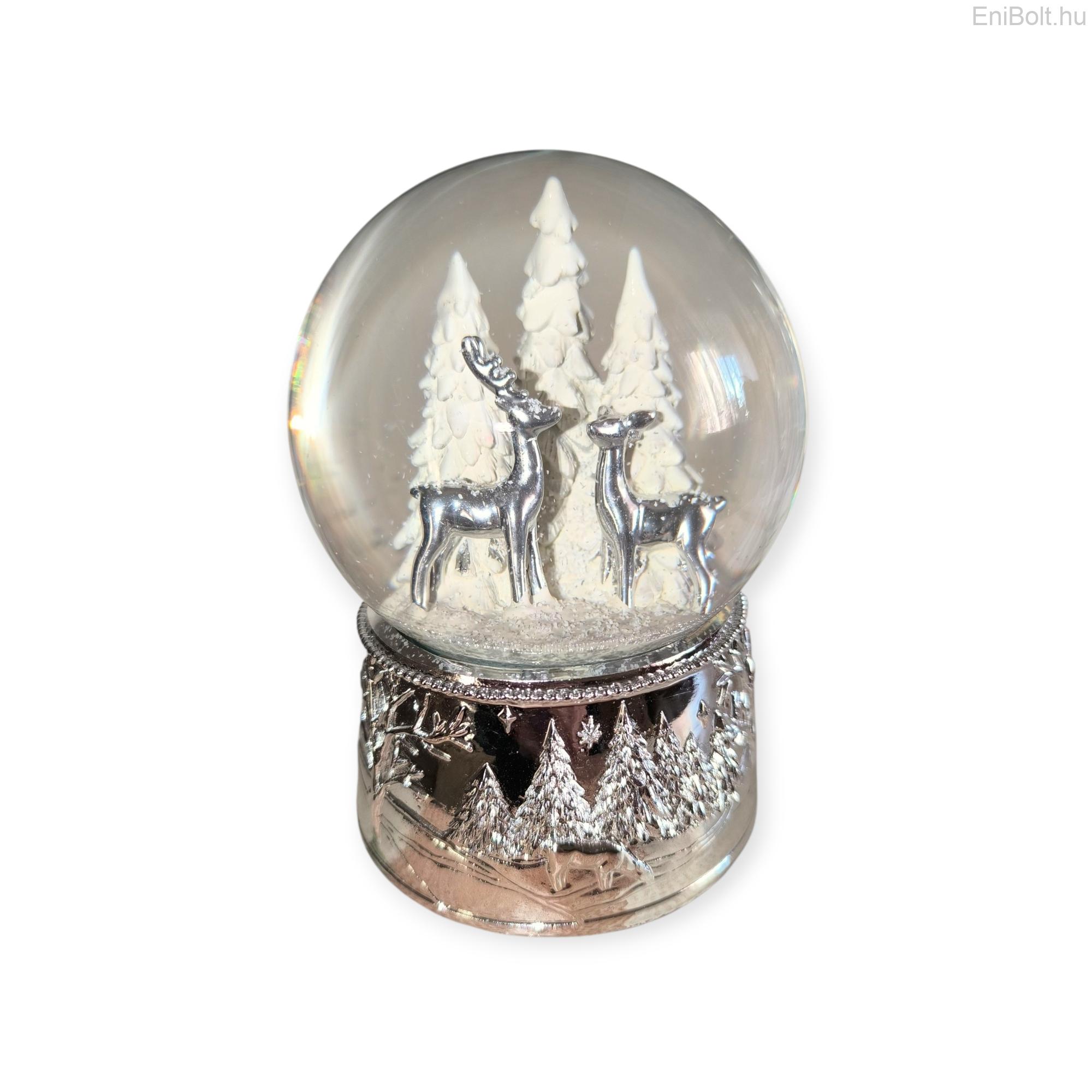 Kezdőlap » Karácsonyi dekorációk » Hógömbök » Téli dallam ezüst hógömb szarvasokkal és fenyőkkel 14 cm