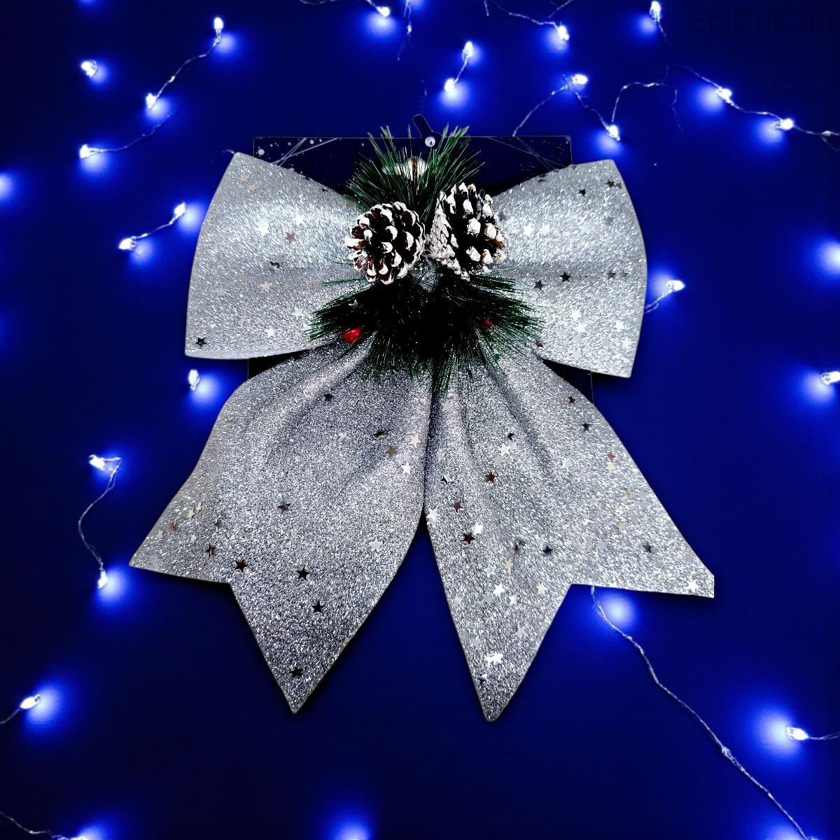 Kezdőlap » Karácsonyi dekorációk » Karácsonyfa gömbök » Ezüst díszek » Téli fény – dekoratív karácsonyi masni ezüst 25 cm