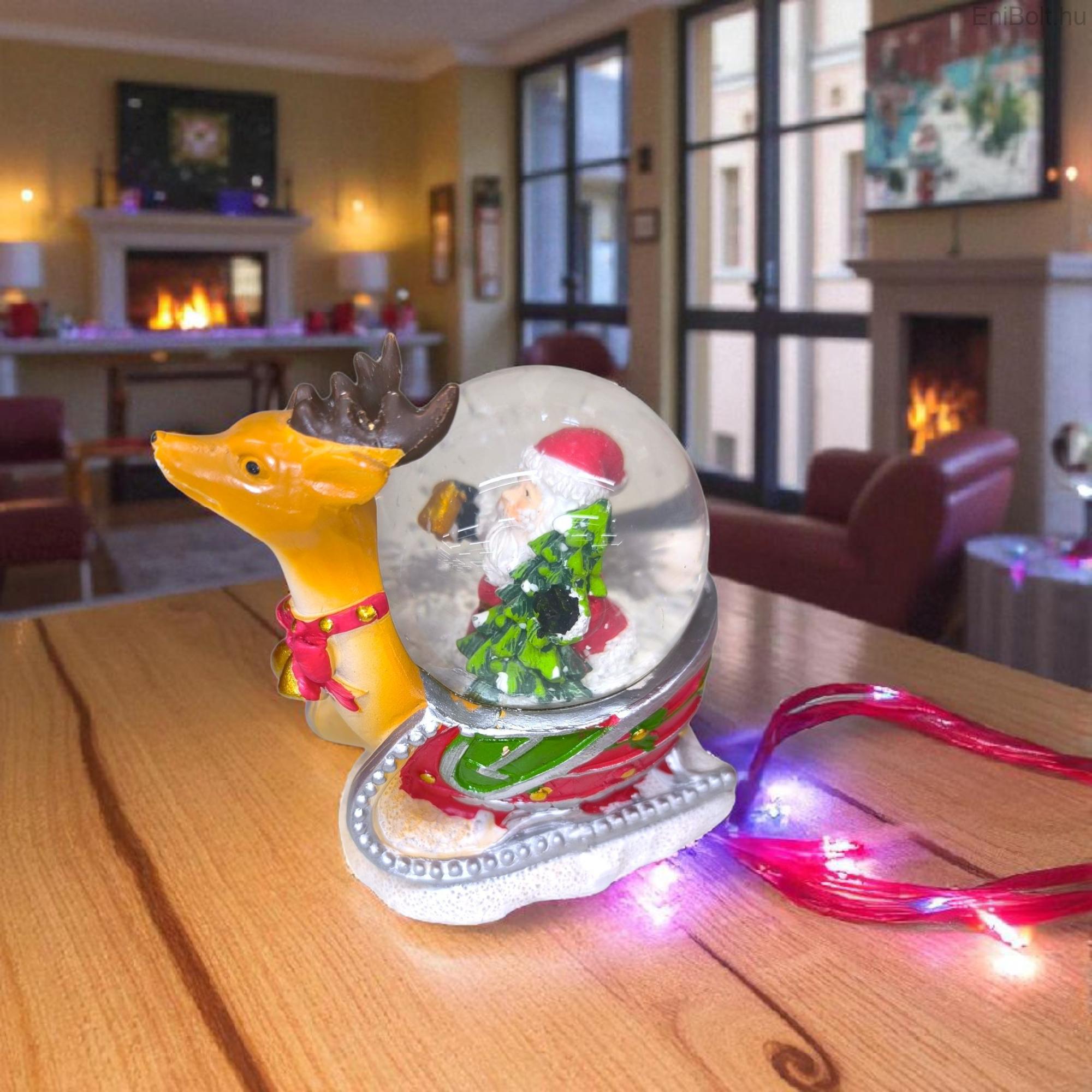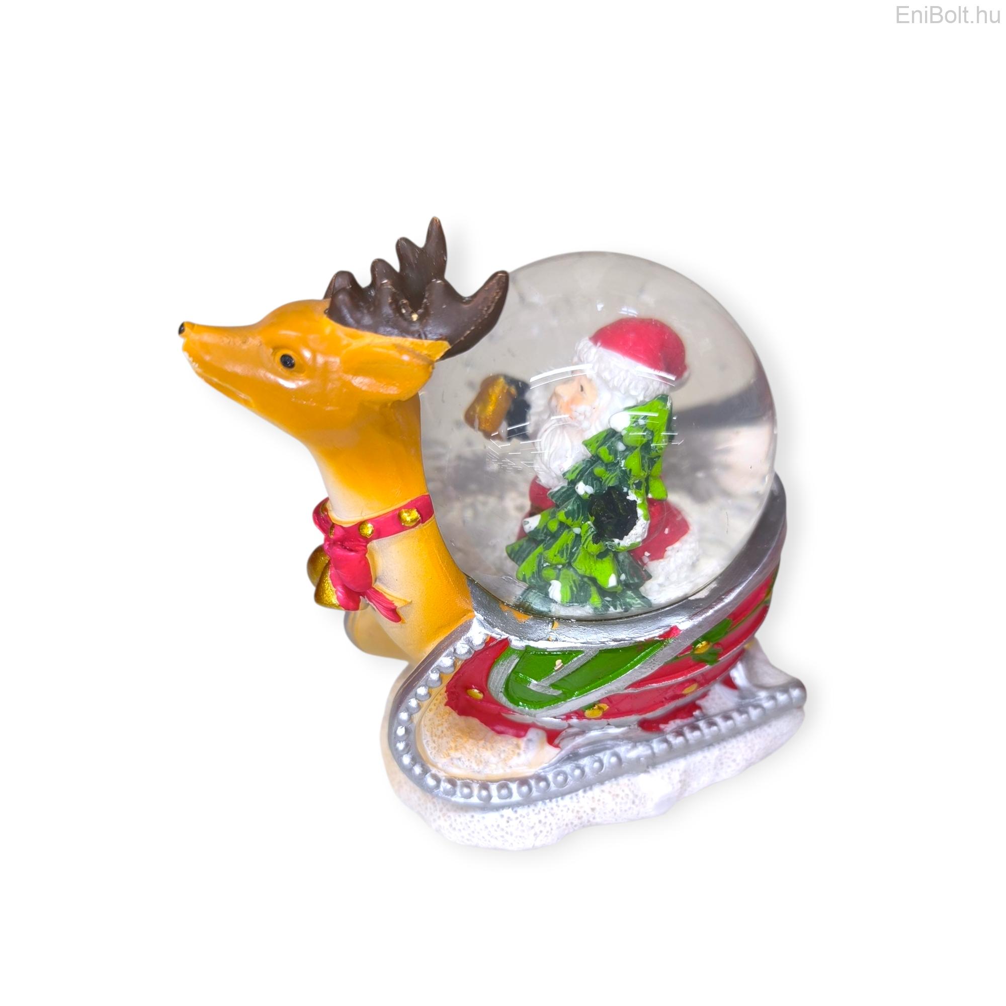 Téli utazás – dekoratív karácsonyi hógömb szánkóval és Mikulással 11 cm